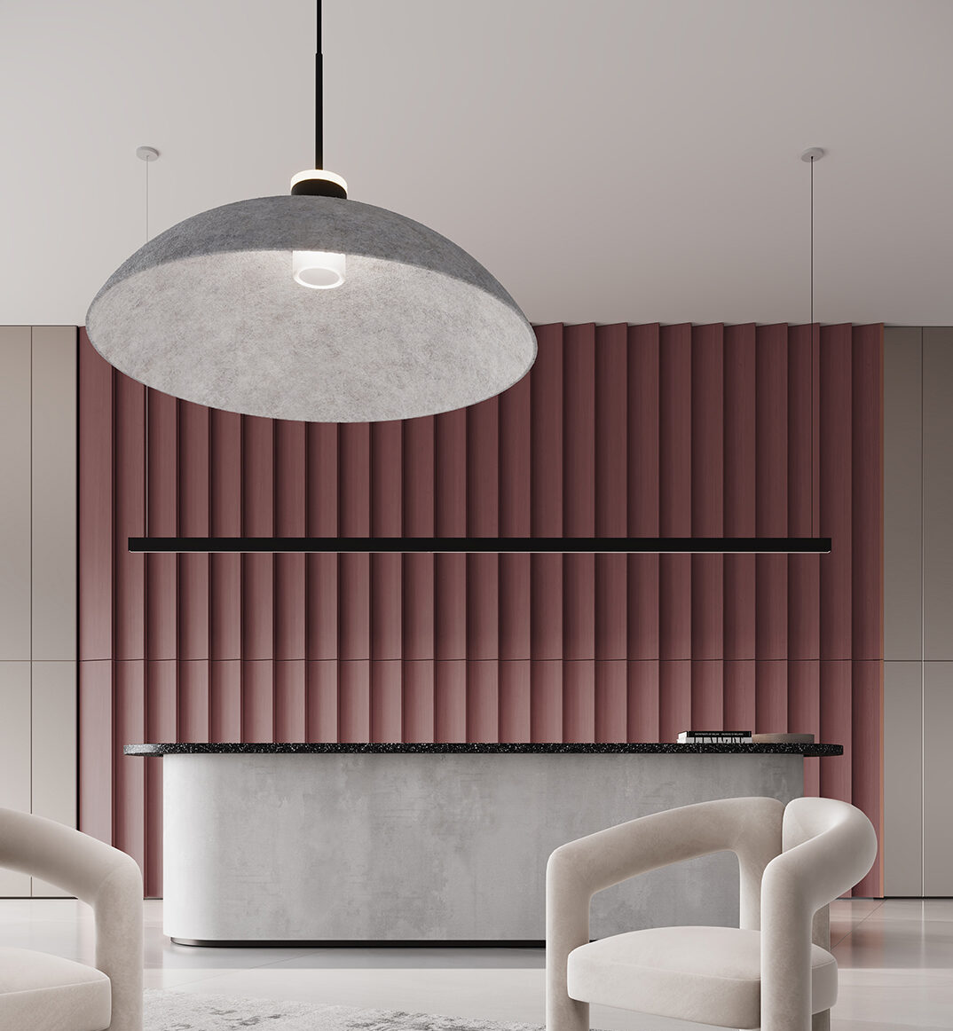 Whether retrofitted into a noisy setting, or inspiring the aesthetic vocabulary of a brand new interior, Arq Acoustix luminaires bring a cozy minimalism to every space they inhabit.