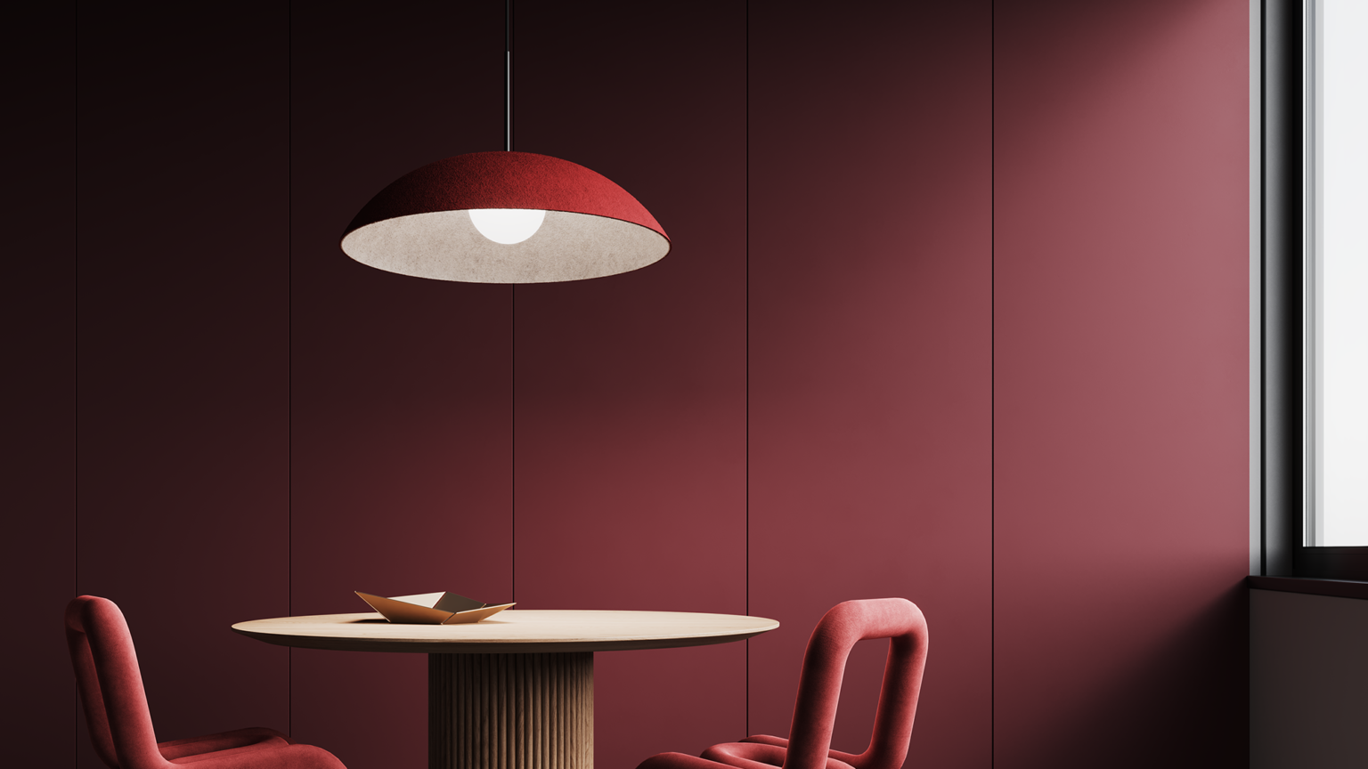The Arq Acoustix collection is defined by carefully curated, dual-color felt shades. Each pendant features a distinct exterior-interior color combination, allowing designers to create spaces with visual depth and acoustic comfort. These bold color pairings introduce dimension and character, ensuring every installation is both striking and highly functional.