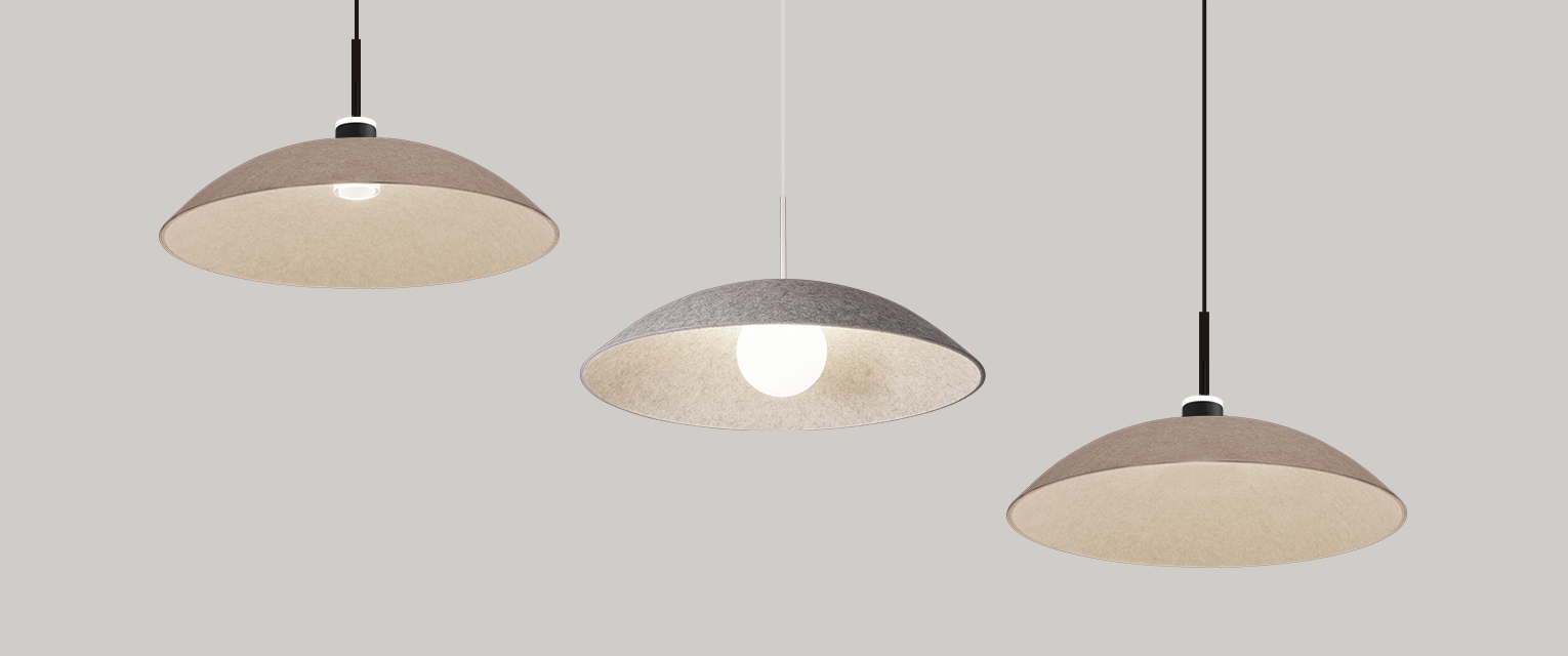 Equally intentional in function and form, Arq Acoustix luminaires are made with sound absorbing textiles created from recycled single-use bottles. By extending the life of these plastic materials, we can reduce landfill that threatens not only our health, but that of our planet.