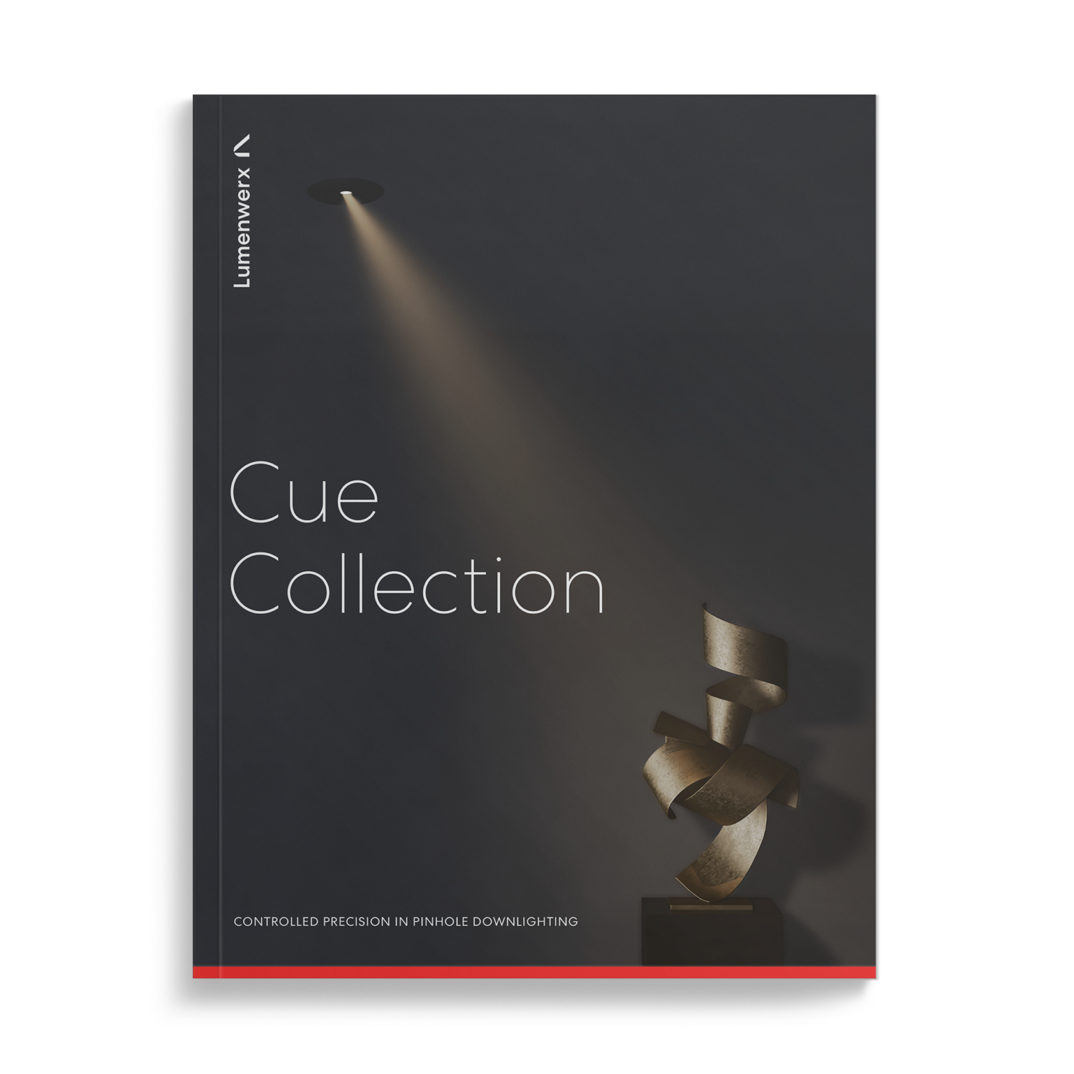 Cue Collection Introducing Cue, a pinhole downlight collection delivering precise, low-glare illumination through 0.5", 1", or 1.5" apertures. Featuring below-ceiling tilt and rotation adjustability, Cue fixtures enable accurate aiming and effortless on-site refinement. Designed as a cohesive system, Cue supports a quiet ceiling and the intentional articulation of space through light
