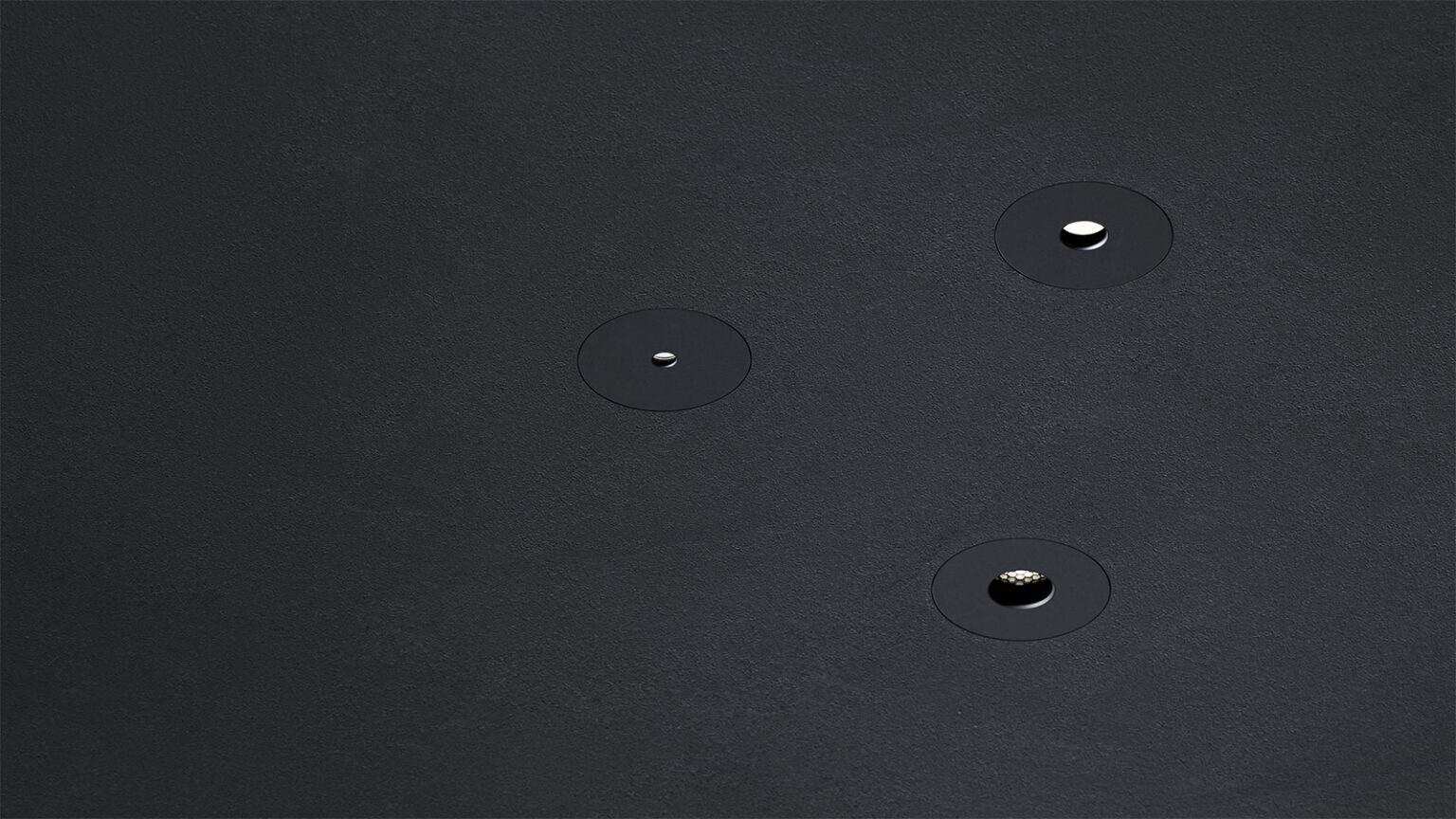 Cue 0.5″ is a miniature pinhole downlight delivering precise beam control and extremely low glare from a highly compact aperture. Interchangeable optics sized specifically to the 0.5″ opening provide multiple beam angles enabling refined accenting with exceptional control. Featuring below-ceiling tilt and full 360° rotation, Cue 0.5″ allows accurate aiming and on-site adjustment while maintaining a minimal ceiling presence.