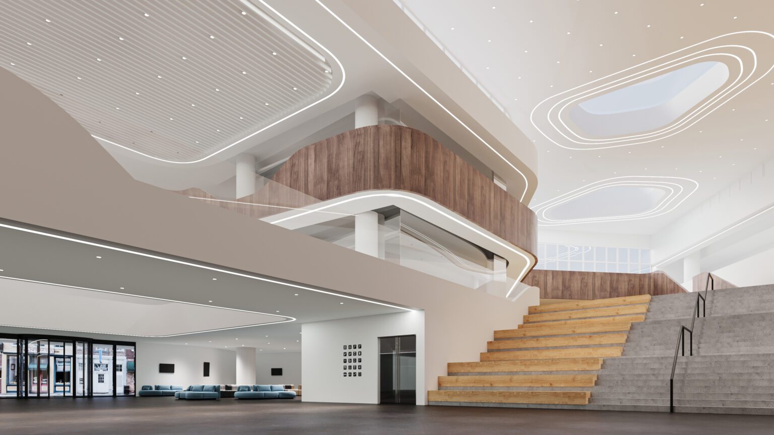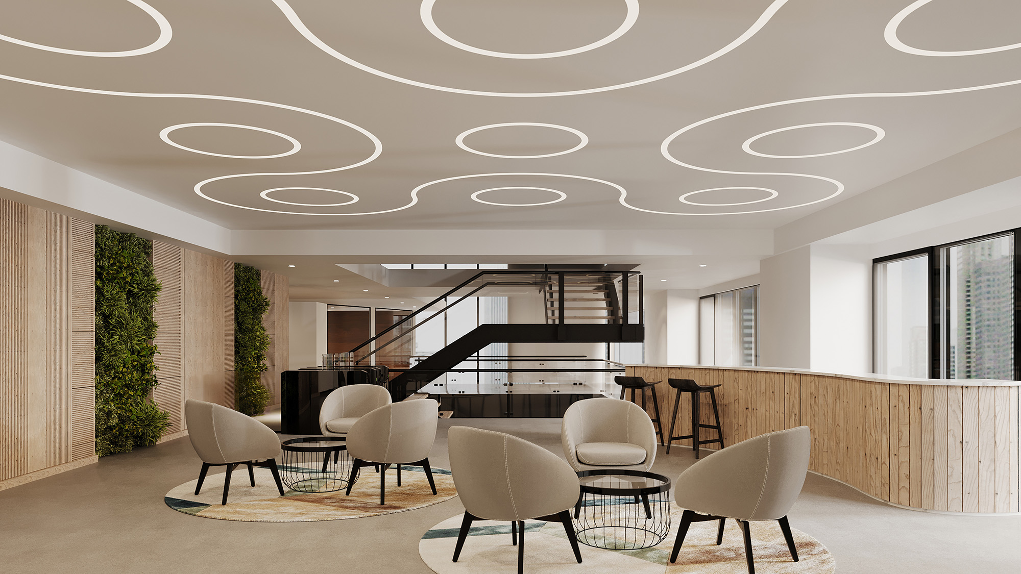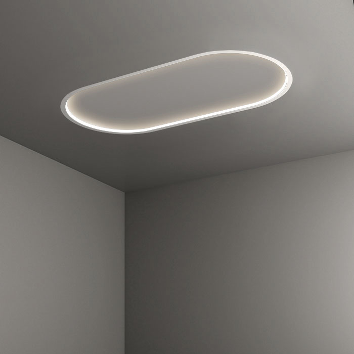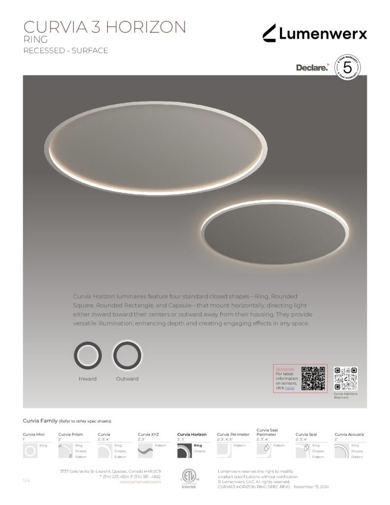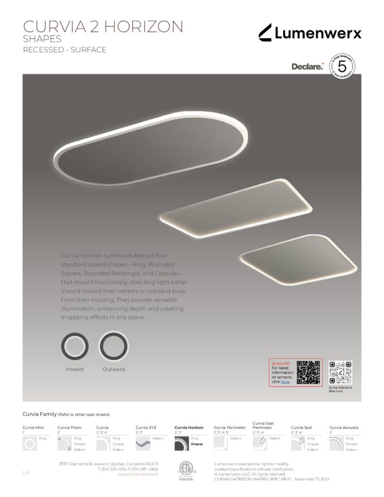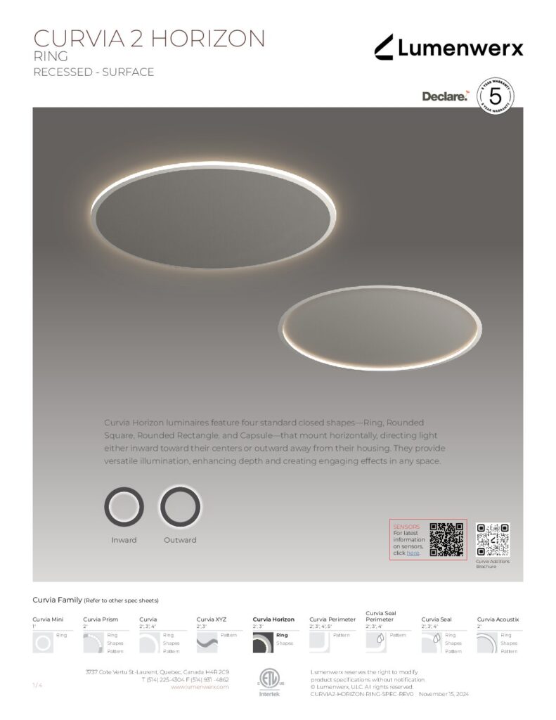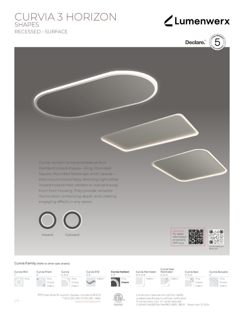 Curvia Horizon luminaires feature closed shapes that mount horizontally direct light either inward toward their centers, or outward away from their housing. They provide versatile illumination, enhancing depth and creating engaging effects in any space.