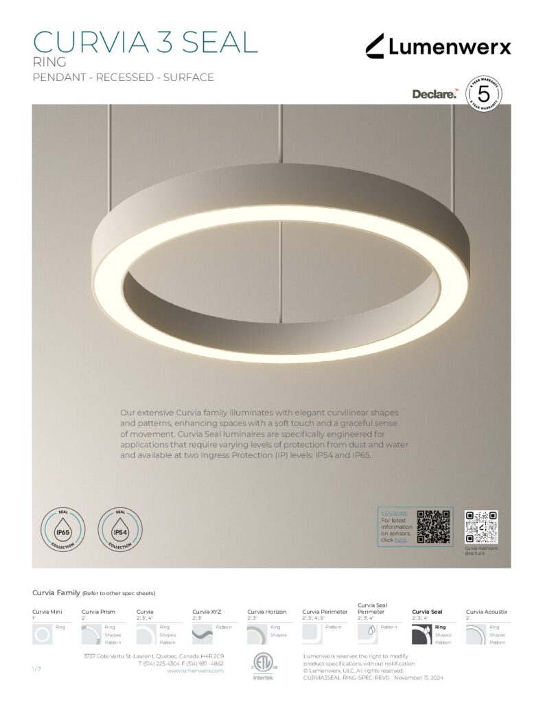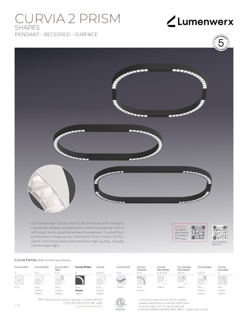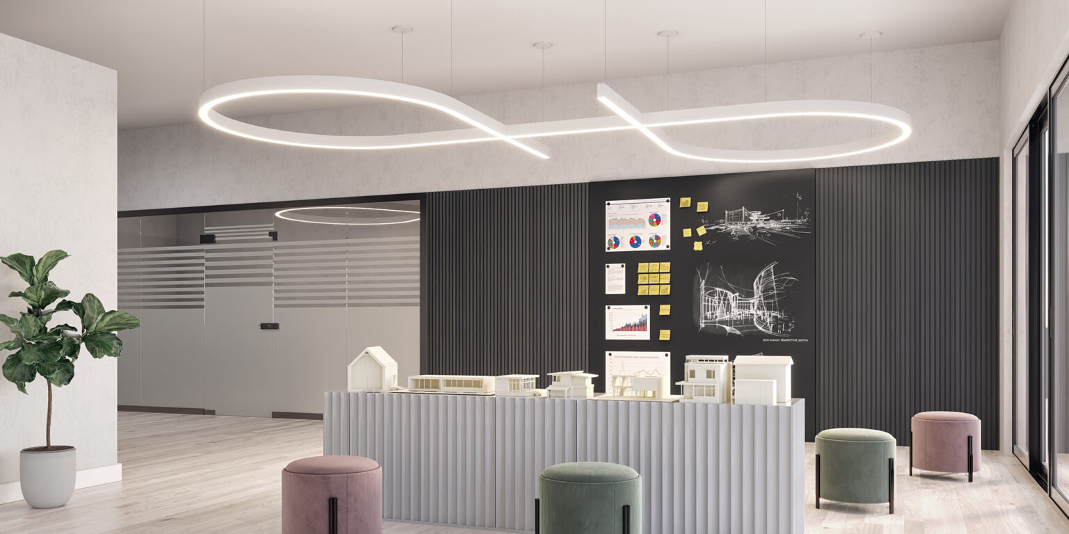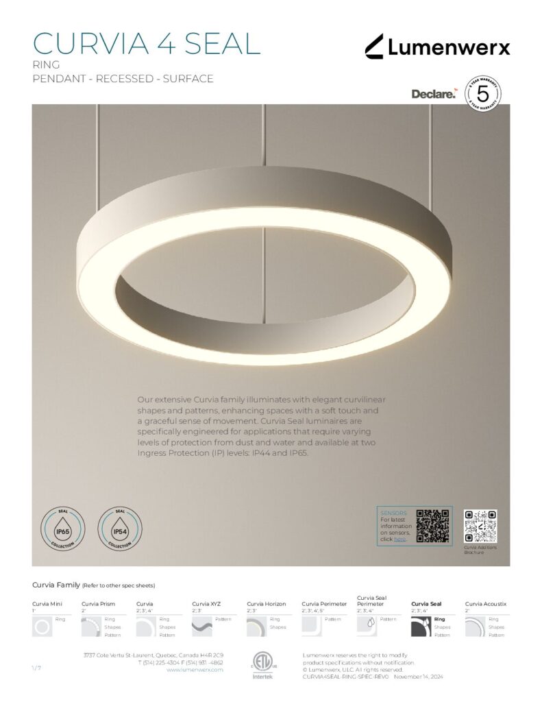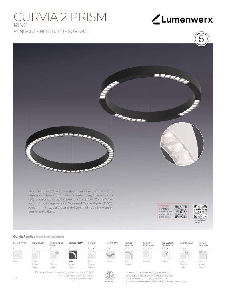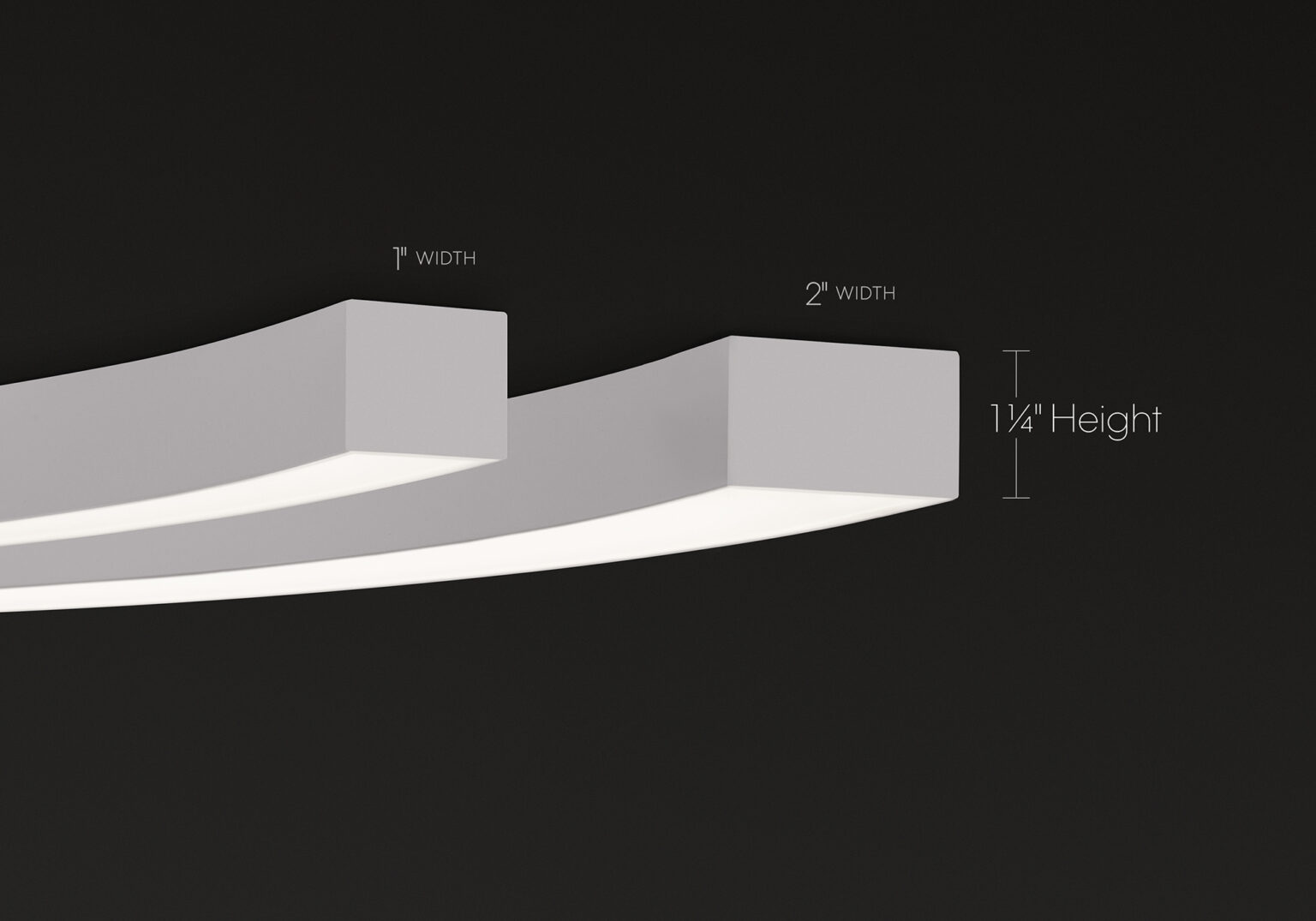 At just 1.25″ tall in 1″ and 2″ widths, Curvia Slim delivers Curvia’s full output in a slim profile. With three standard radii for curved corners and two end cap options, it enables flowing curves and bold patterns across pendant, recessed, surface, and wall/direct view applications. The Curvia Slim Seal extends this design language to demanding environments with IP54 and IP64 protection.