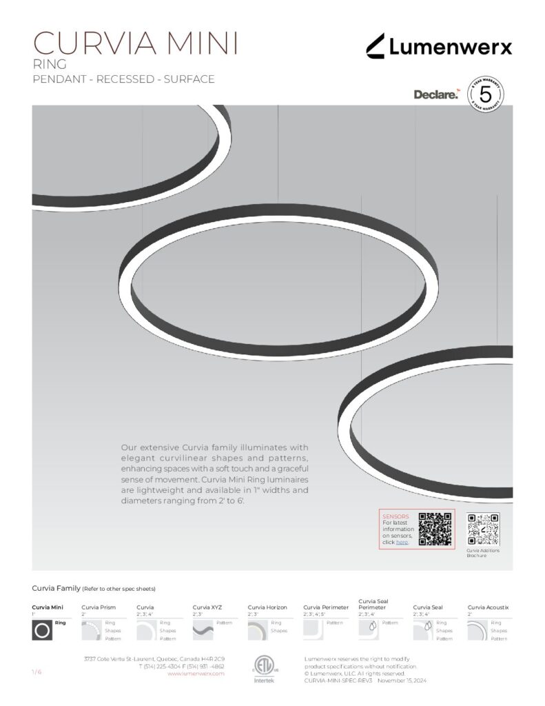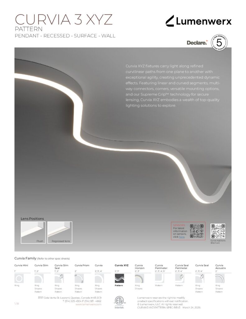 The Curvia collection offers curvilinear lighting designs with meticulously engineered features, including snap-in lenses, seamless housings, precision optics, and integrated drivers. Using advanced technologies, Curvia luminaires master the complexities of curved lighting design, coupled with impressive performance. The Curvia collection blends effortlessly into various environments with its clean, refined aesthetic.