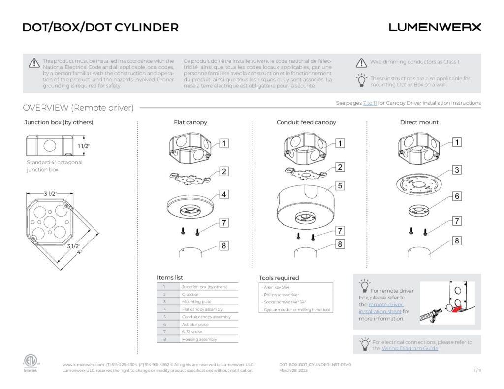 Dot, Box, Dot Cylinder Collection Effortlessly elegant, Dot, Box and Dot Cylinder luminaires can be surface-mounted on ceilings or walls. Fixtures include flat, conduit feed, or direct mount canopies in round or square formats.