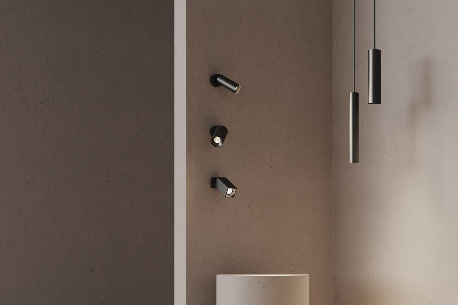 Dot, Box, and Dot Cylinder are individual mounting systems that can be used as fixtures on their own, or alongside our Pivot track system for larger scale installations.