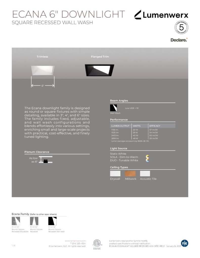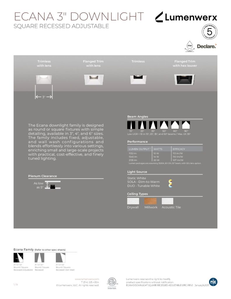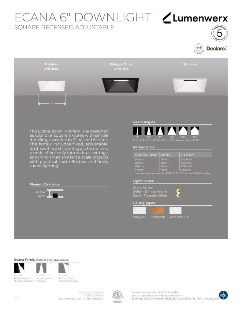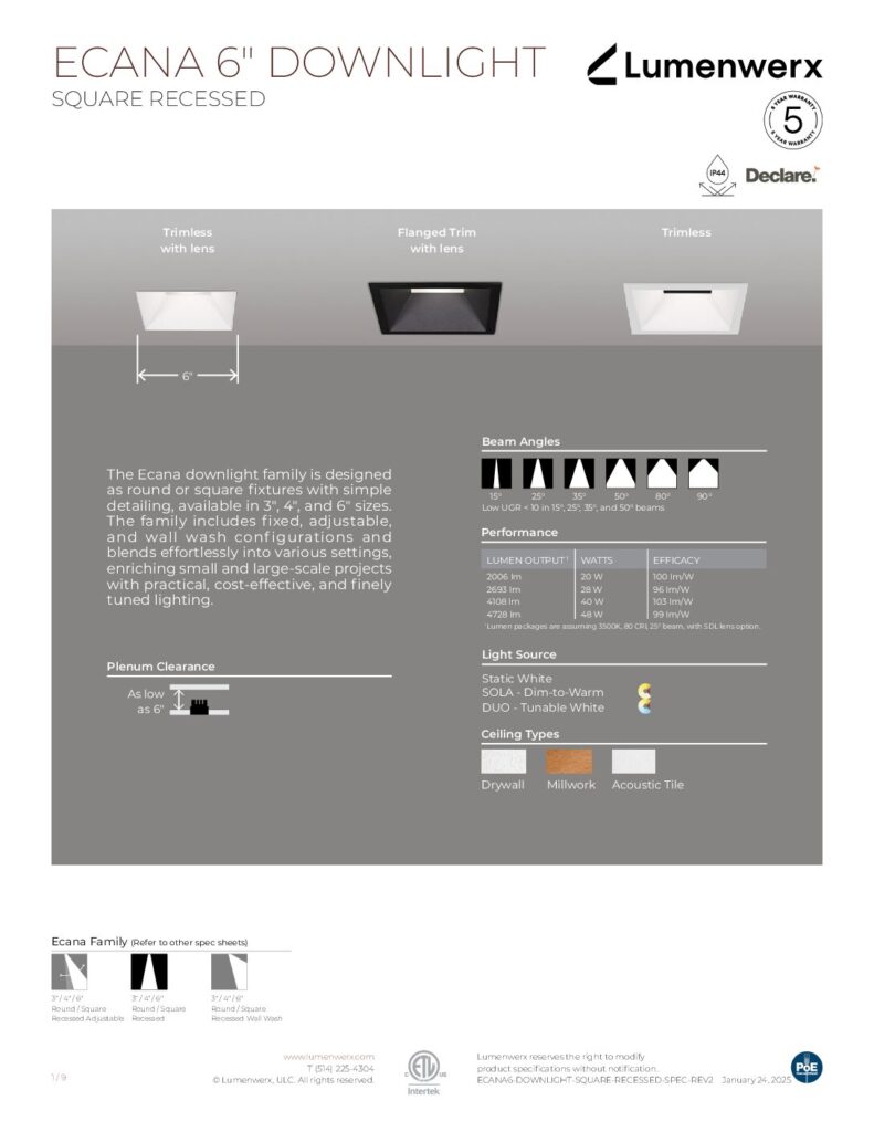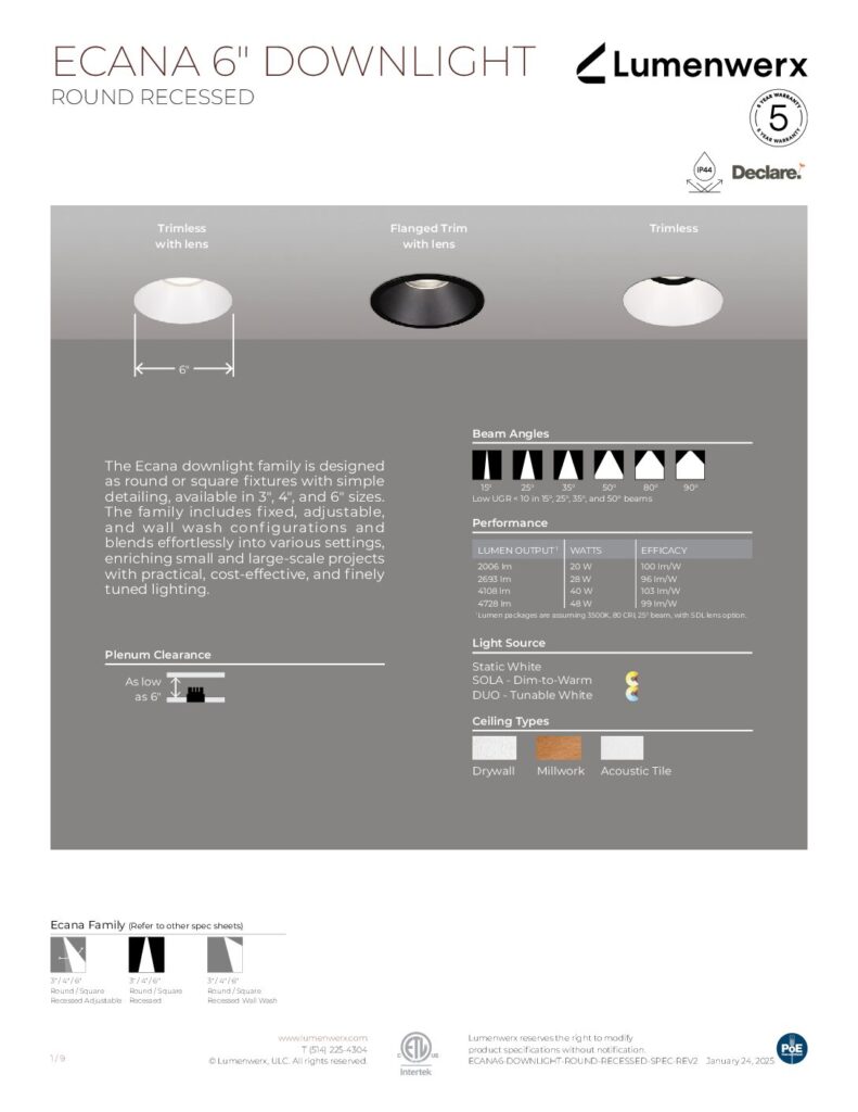 DownlightsAs versatile and refined as you need them to be, Ecana downlights can be customized with a variety of accessories, trims, color temperatures and control options. Available in square or round formats, in 3″, 4″, and 6″ sizes.