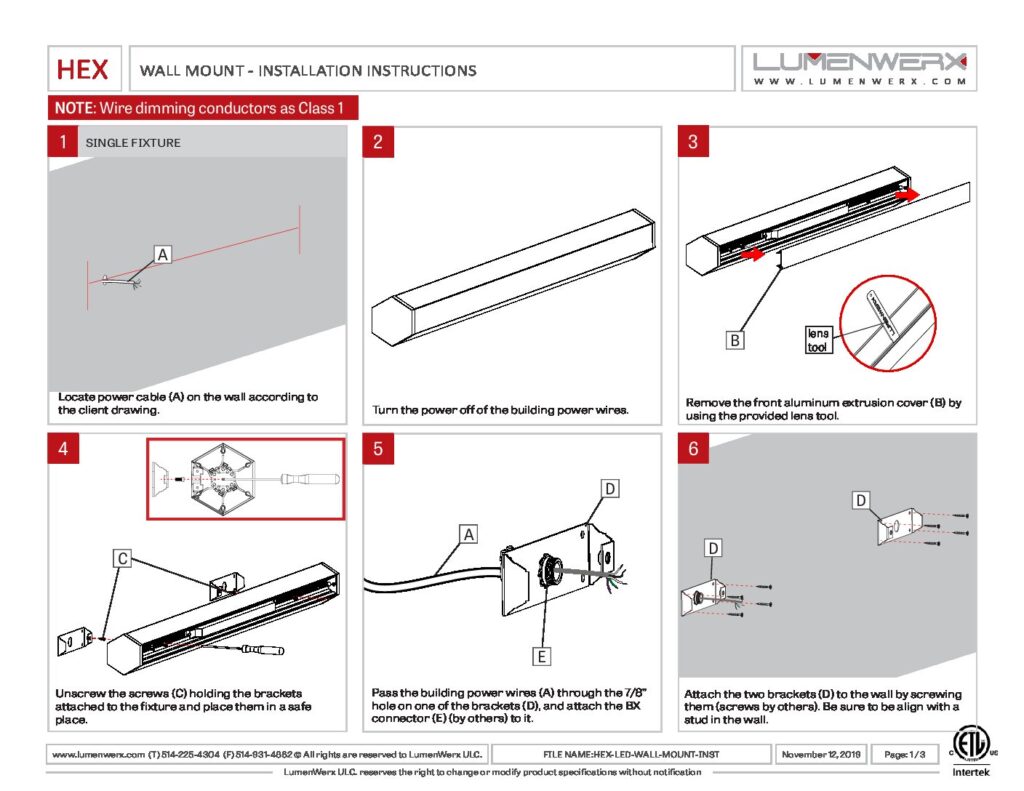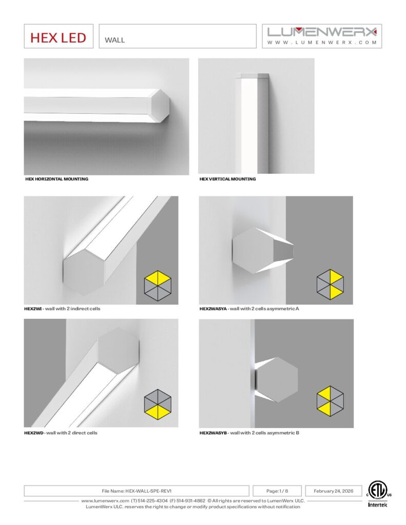 Hex wall fixtures can be mounted vertically or horizontally in any of six ADA-compliant cell configurations. All serviceable components can be accessed through the luminaire.