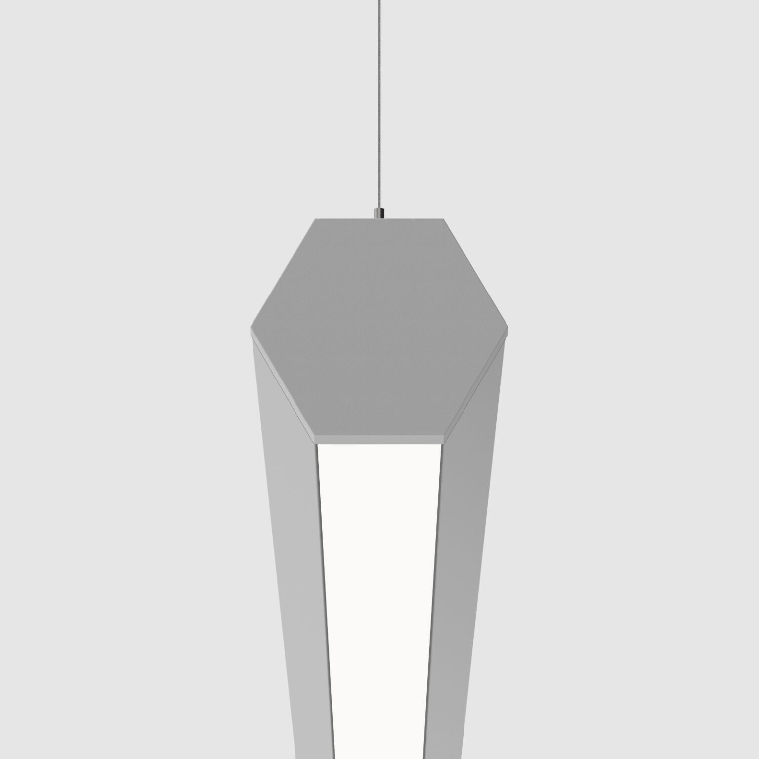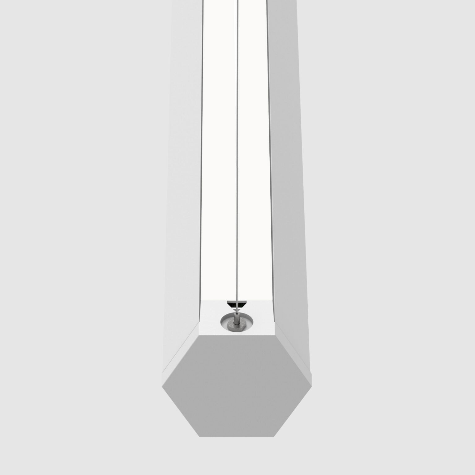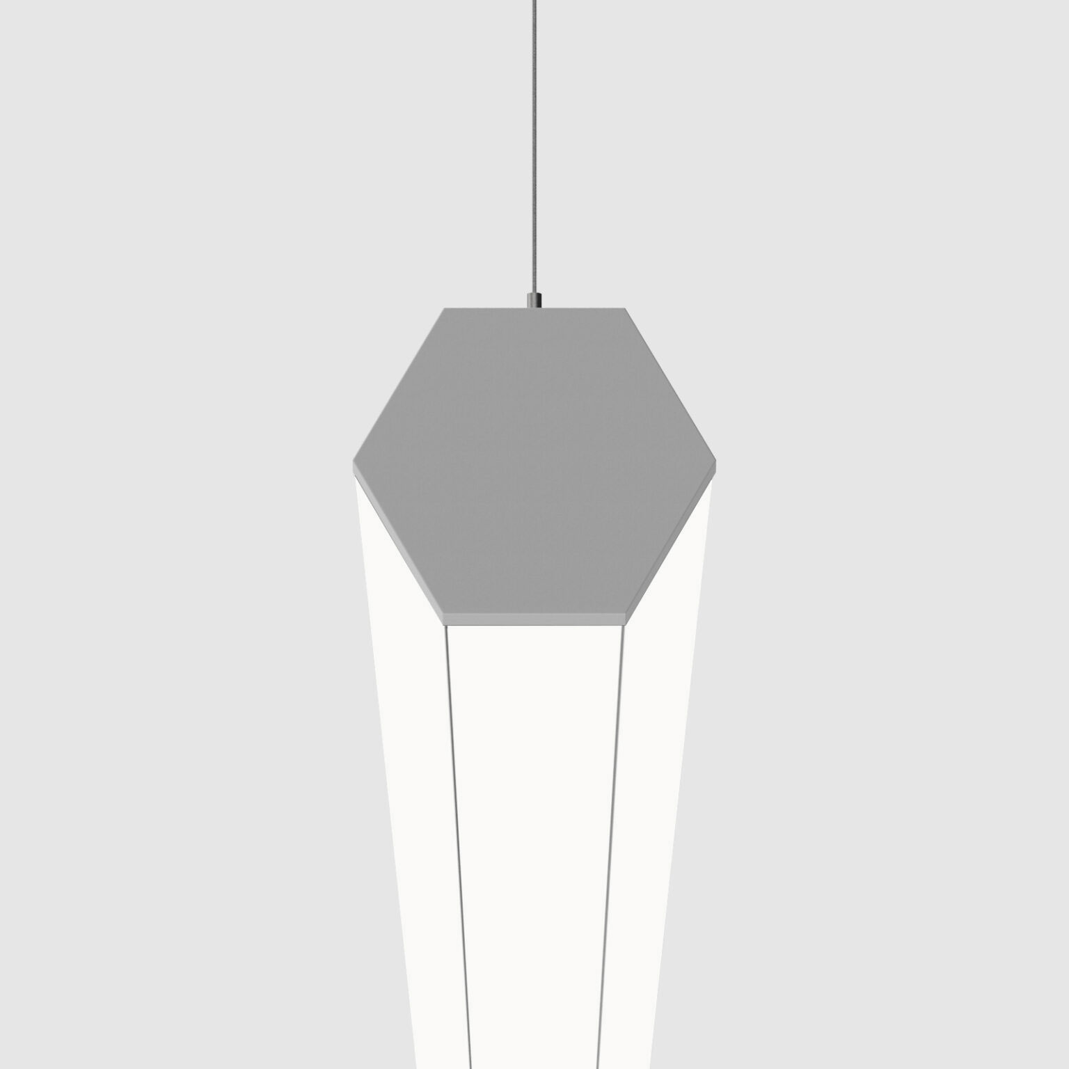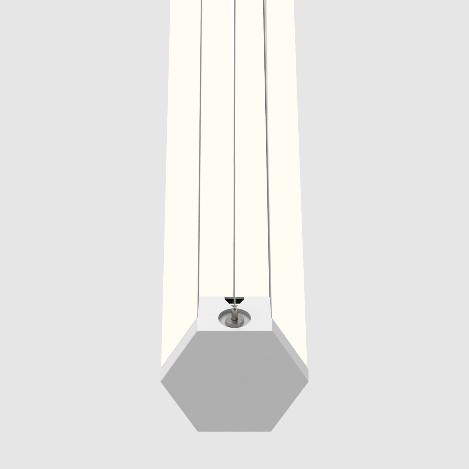As customizable as they are functional, Hex pendants feature 2” wide cells (luminous or opaque) that snap into the armature for a seamless transition from cell to cell and access to LED arrays and driver. Available in 2’ to 12’ sections with cast endcaps for crisp detailing and suspension support, Hex can be installed as a single luminaire or continuous run.