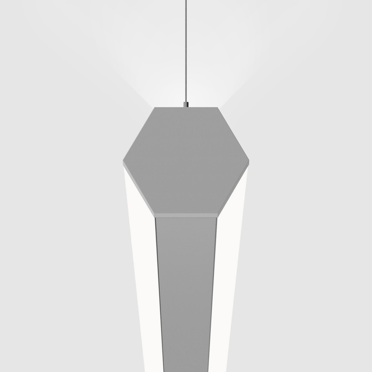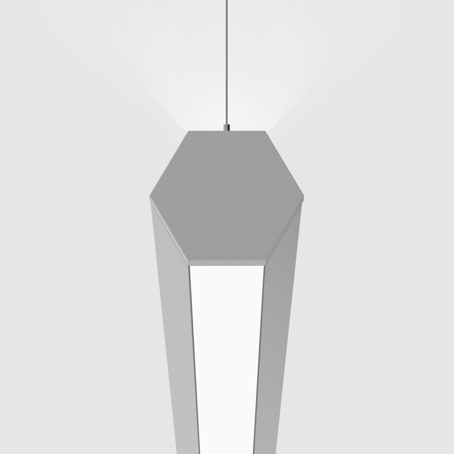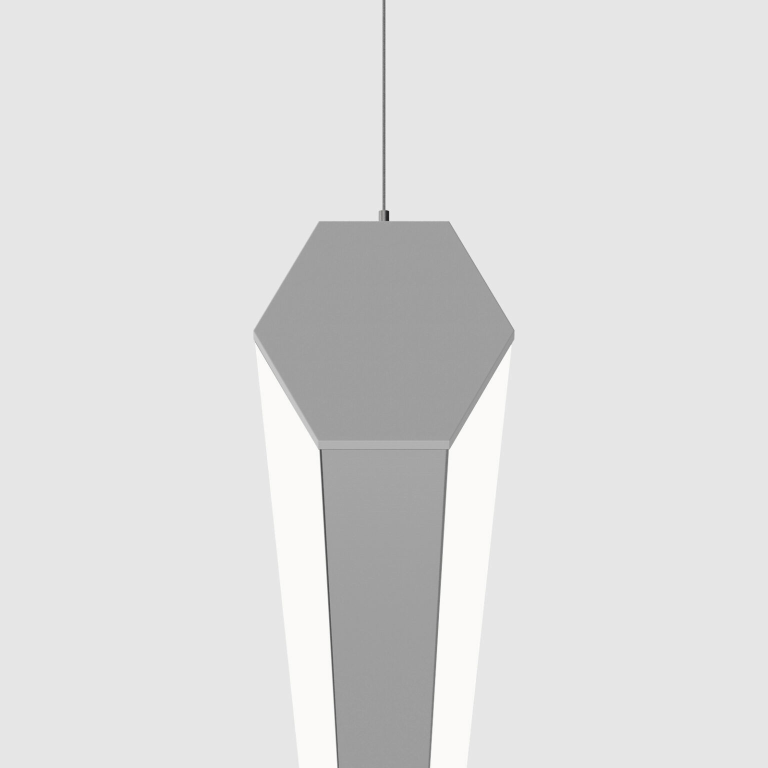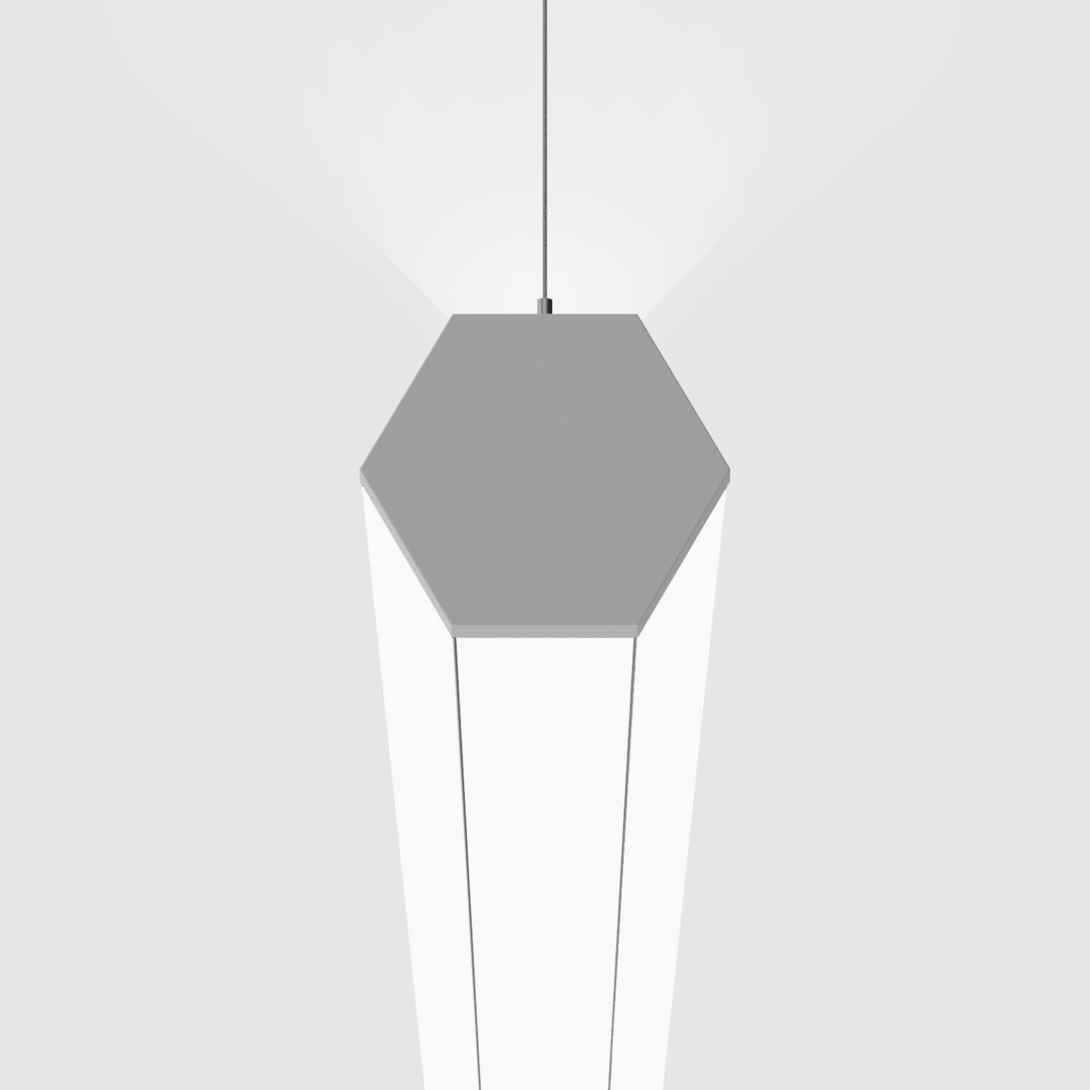 As customizable as they are functional, Hex pendants feature 2” wide cells (luminous or opaque) that snap into the armature for a seamless transition from cell to cell and access to LED arrays and driver. Available in 2’ to 12’ sections with cast endcaps for crisp detailing and suspension support, Hex can be installed as a single luminaire or continuous run.