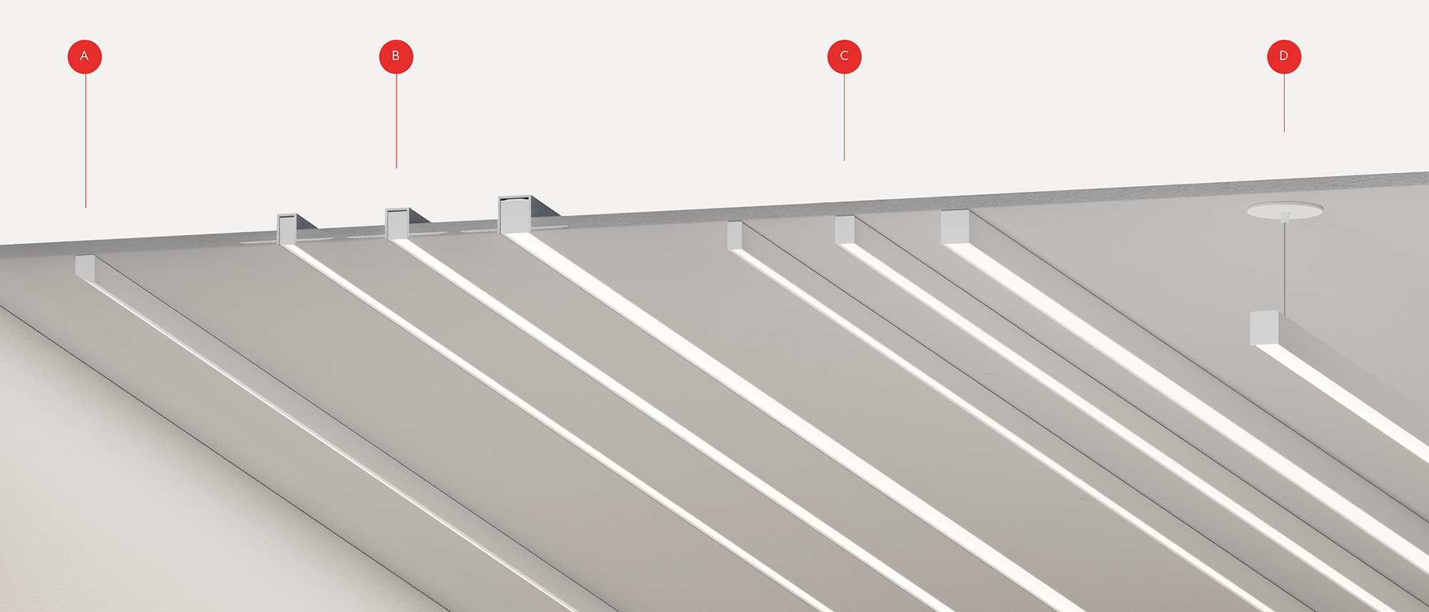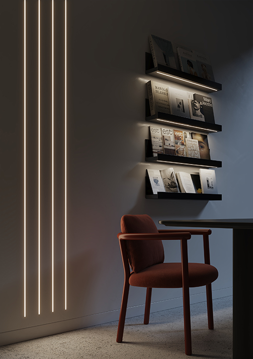 The mounting system disappears into the architecture, leaving only a pure line of light.