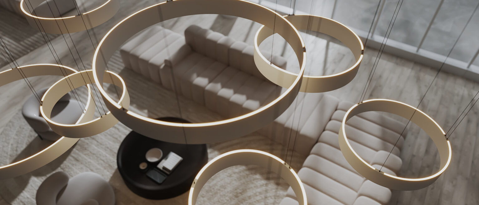 Minear Rings are slim ring pendants that provide clean, even illumination. Used alone or in groups, their circular forms introduce a subtle, art-mobile–like presence. Minear Rings fuel the imagination with countless design opportunities, making the product line ideal for various settings, from modern residential interiors to dynamic commercial spaces.