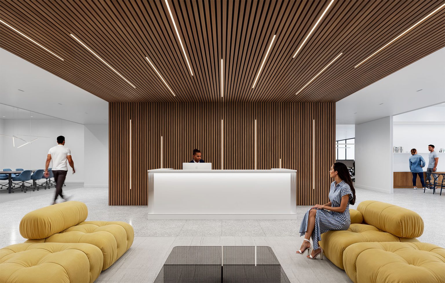 Surface, recessed, and pendant options let Minear integrate into ceilings, walls, wood slats, coves, and millwork with ease. Its precisely engineered profiles create clean, continuous lines of light across any material, with direct distribution and a full range of finishes that suit the most detailed applications.