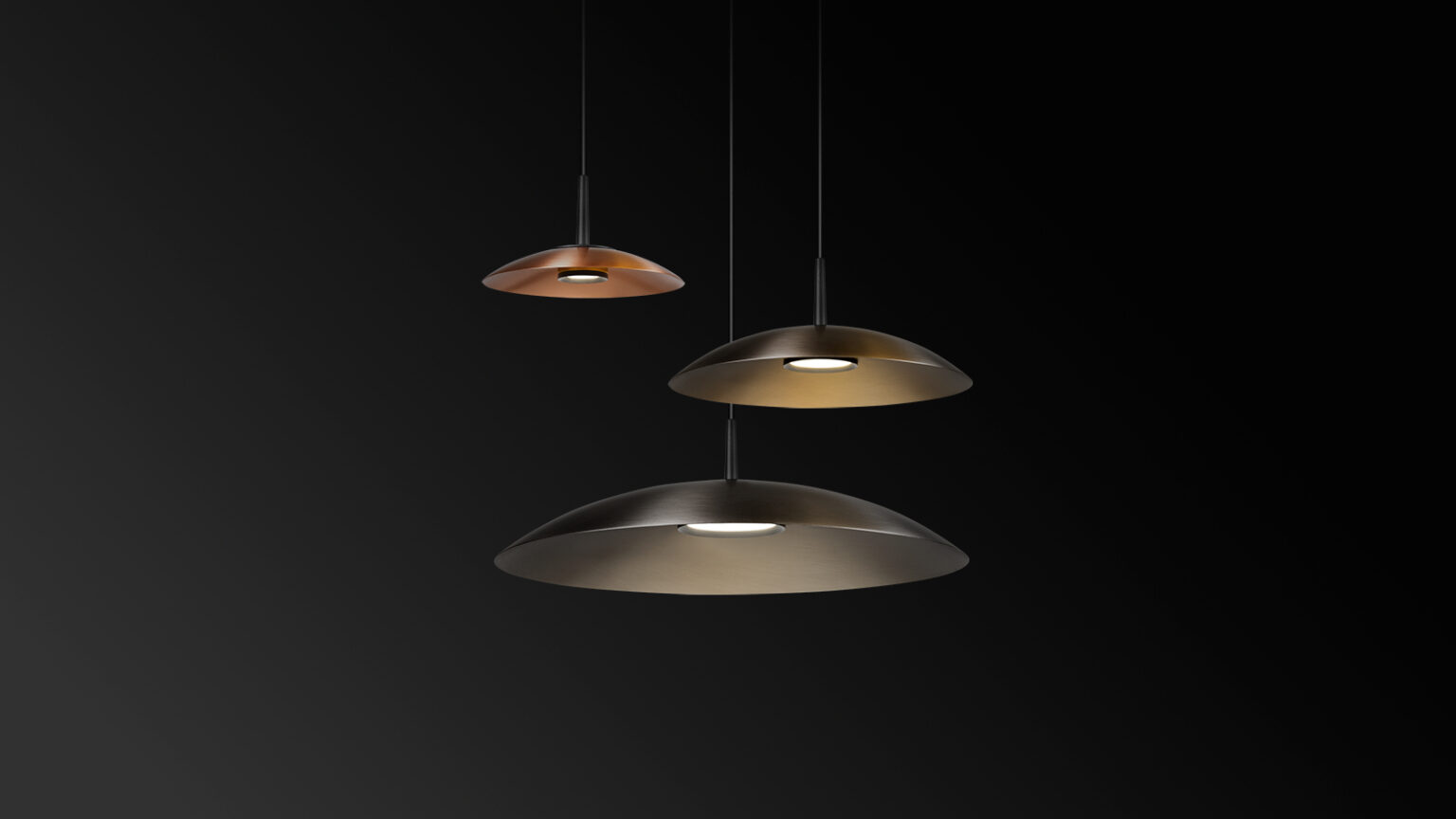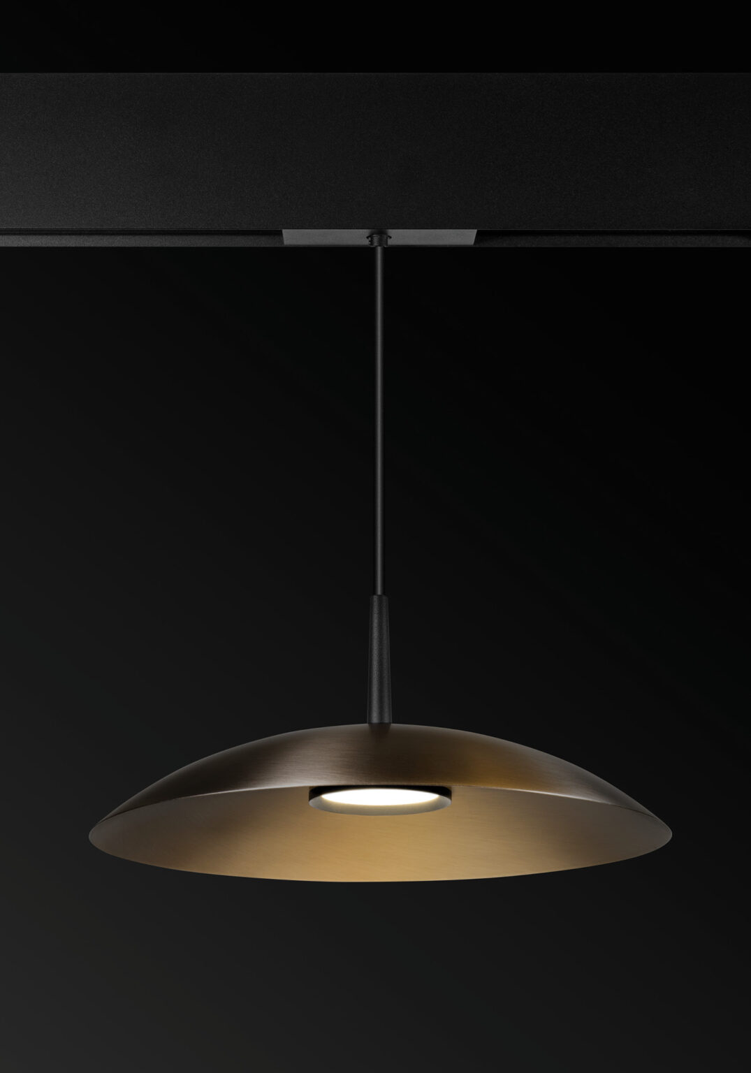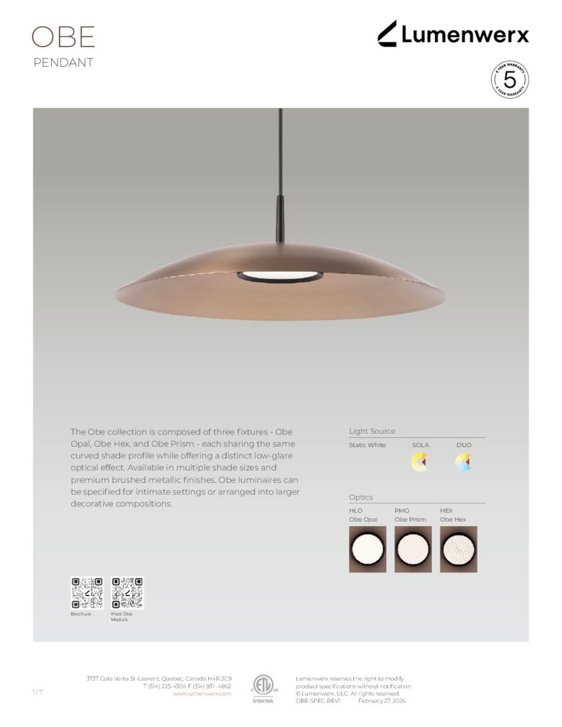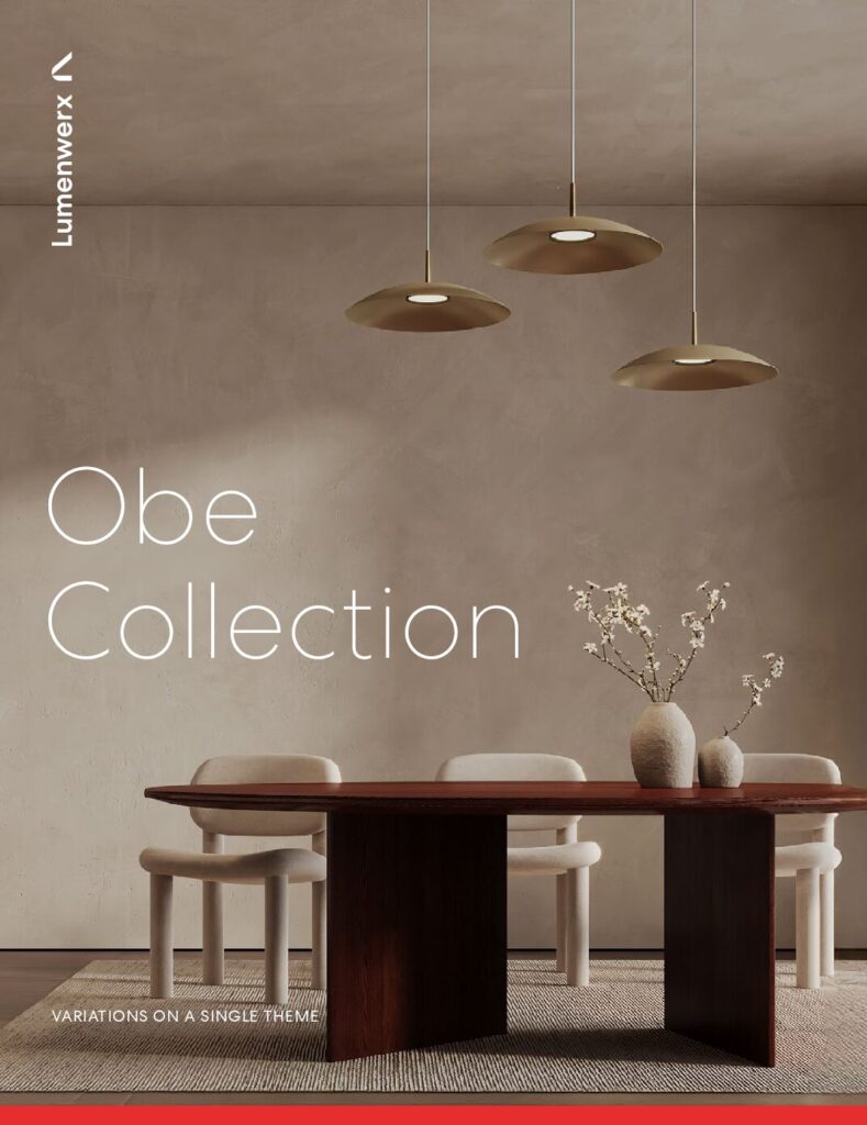 Obe is offered with premium brushed metallic finishes for the shade, paired with a gold anodized or black powder-coated module—each selected to reinforce its refined, architectural character.