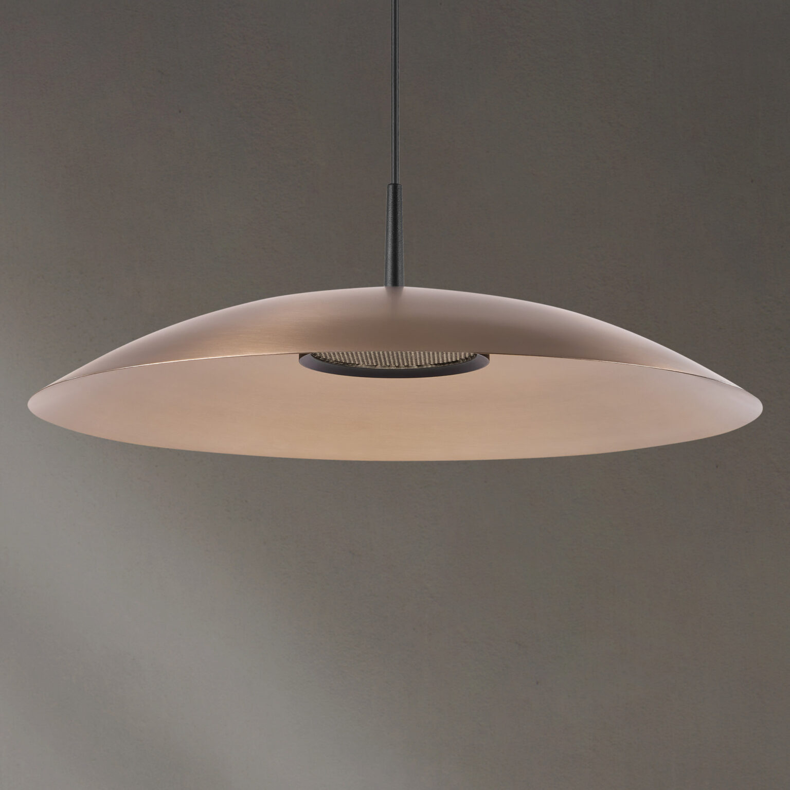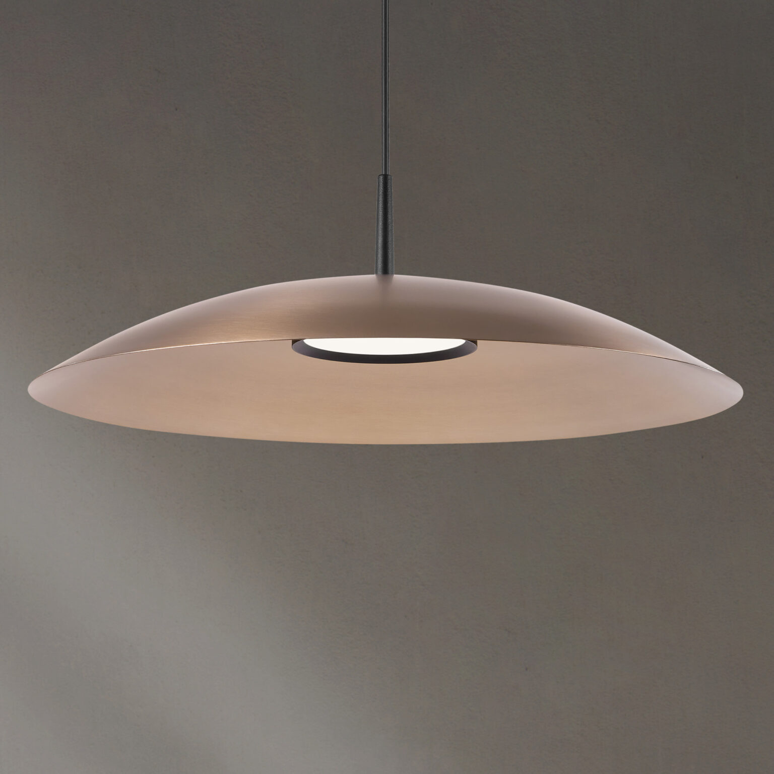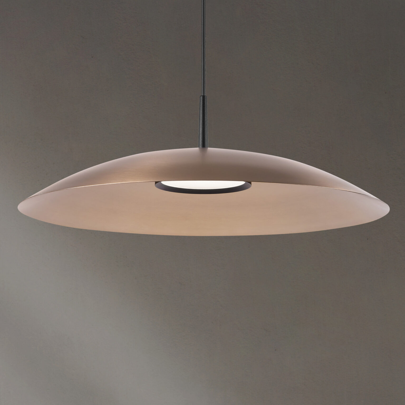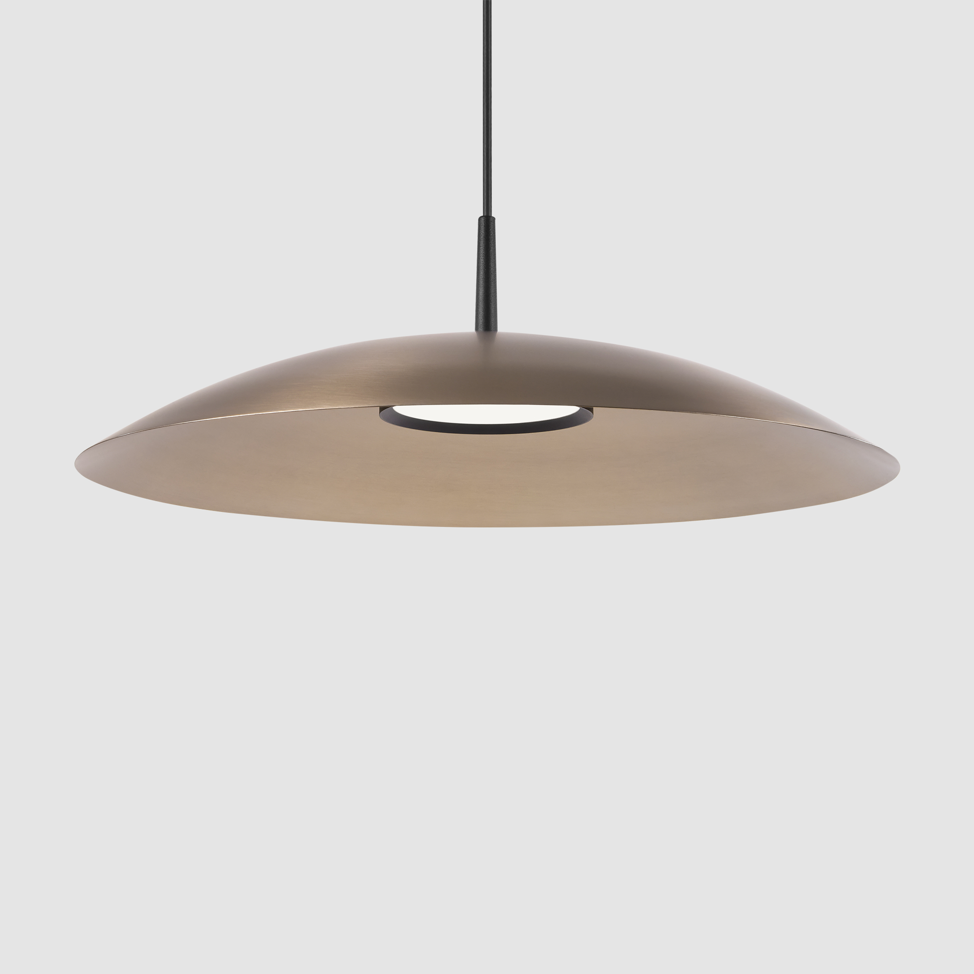 Obe is offered with premium brushed metallic finishes for the shade, paired with a gold anodized or black powder-coated module—each selected to reinforce its refined, architectural character.