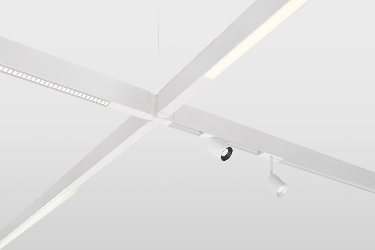 Designed for pendant mounting, Linx offers a range of movement between 60° and 180°, with 2-way, 3-way, and 4-way horizontal options, and a 2-way connector on the vertical.