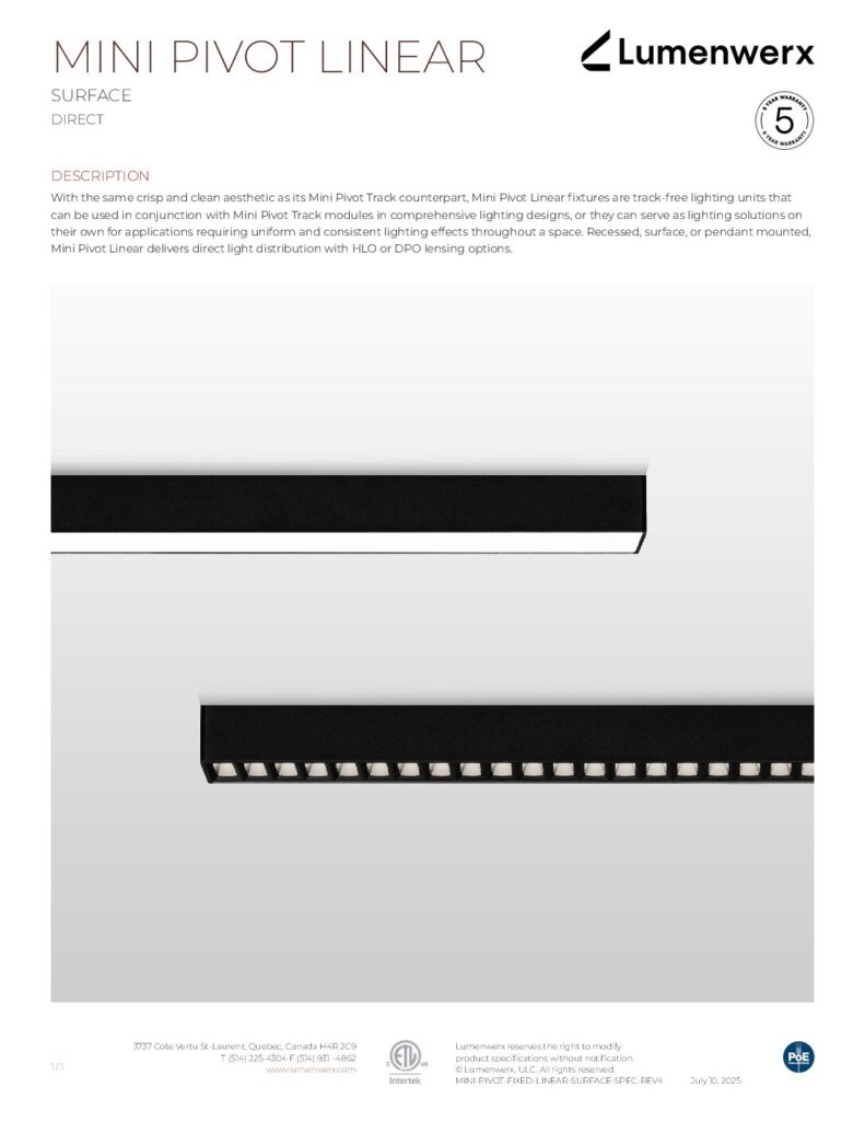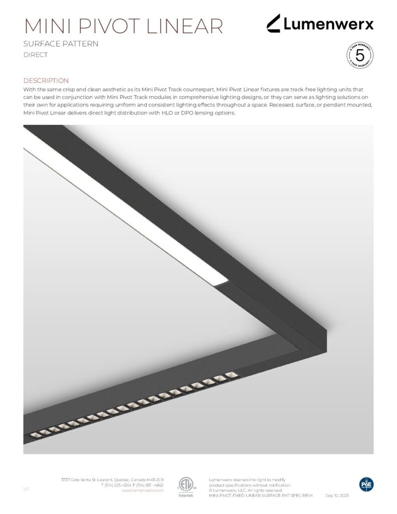 Pivot Collection Pivot is an architectural linear magnetic track lighting system designed for recessed, surface, and pendant mounting. Modular and expandable, this expansive collection features interchangeable modules. Mini Pivot, its smaller-sized counterpart with a compact 0.9" width, provides an additional range of options to mix and match for even more flexible, creative lighting solutions.