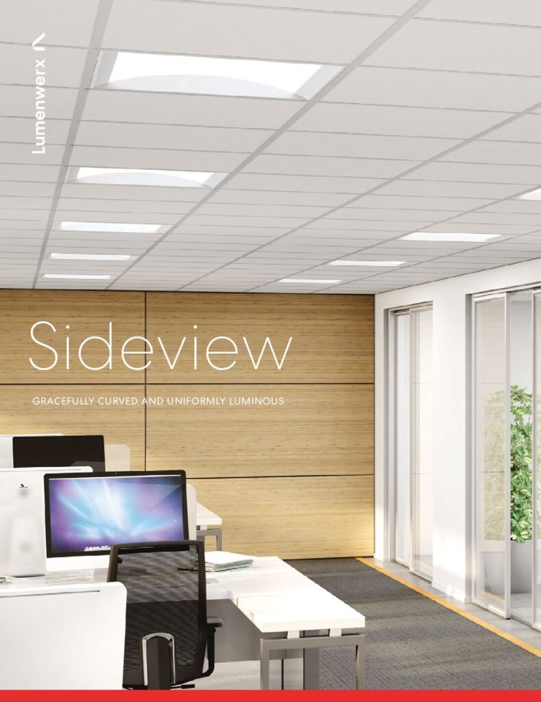 Seamless Illumination, Minimal DepthSideview delivers visually comfortable and notably pleasant general illumination with an uncommonly even luminous surface. This attractive and comfortable lighting result comes from our innovative Compression Planar Optic. With the LED flux side-coupled directly into the optical panel, the Sideview housing is very shallow, at less than 2 ¾” deep. Despite its minimal depth, Sideview’s gently curved concave optic seems to disappear up into the ceiling.