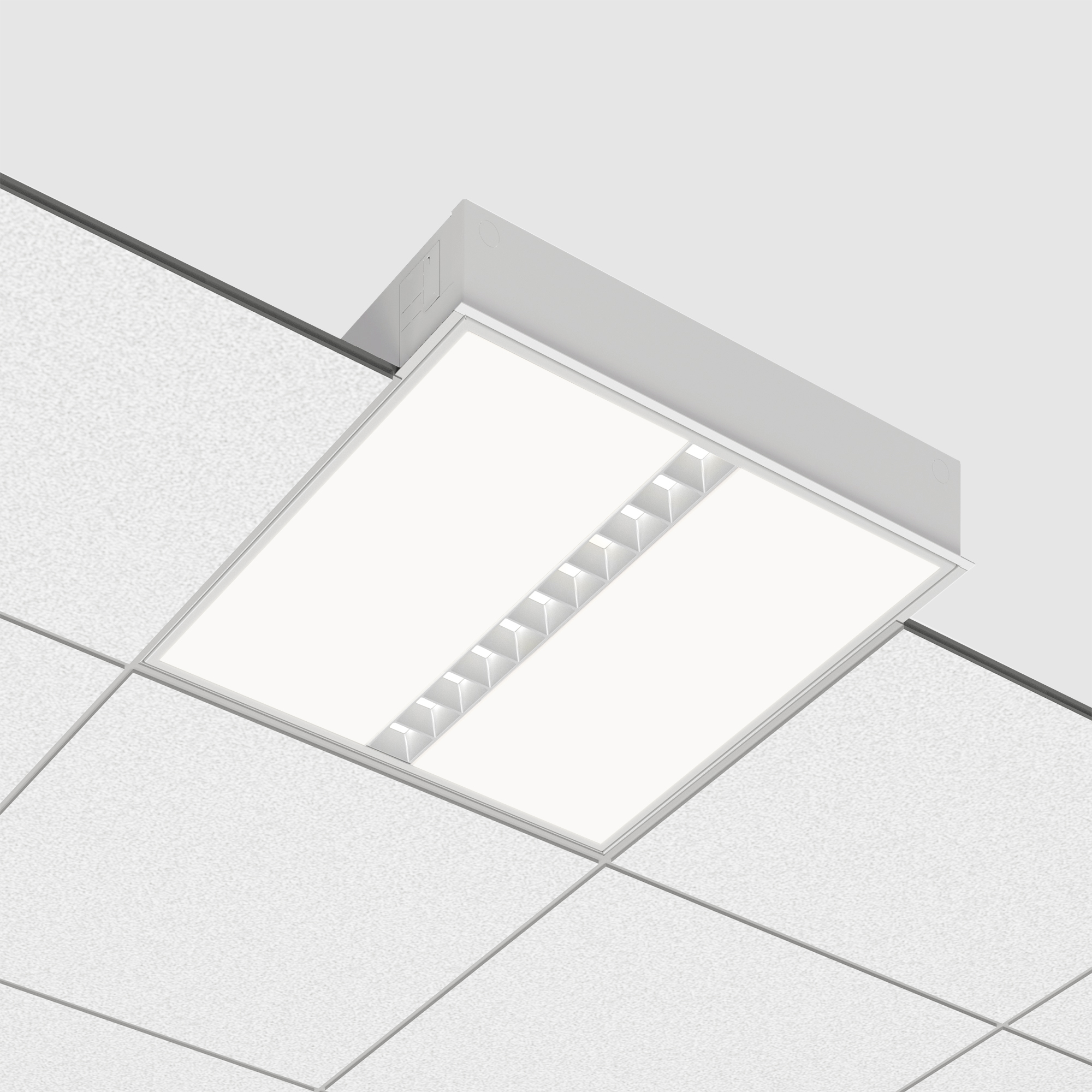Sophistication in a squareAdd visual comfort and reduce glare with Ubik Troffer. Available with centered parabolic louvers and side lenses that use Tri-flect technology for indirect, reflected, or soft diffused distribution.