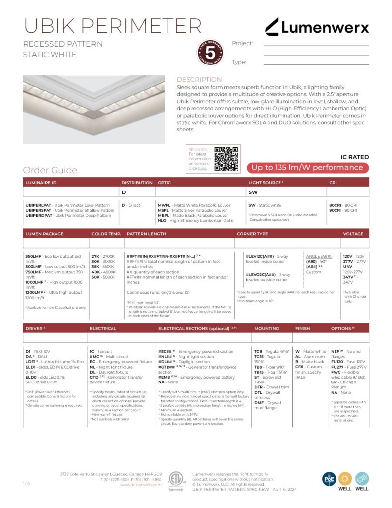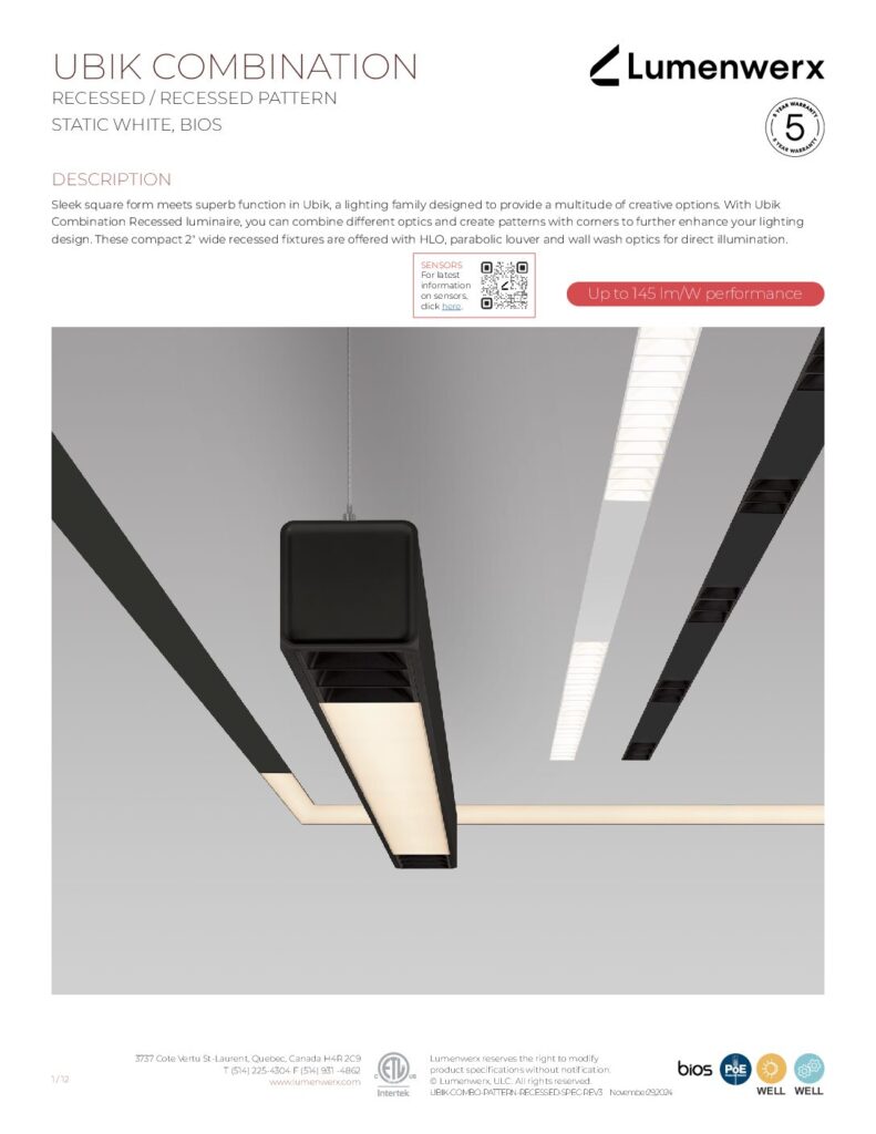 Variety is the spice of lightUbik Combination offers endless possibilities. Mix and match optics for visual interest and functional diversity with parabolic louvers in three matte colors, black, silver and white, HLO, or as blanks.
