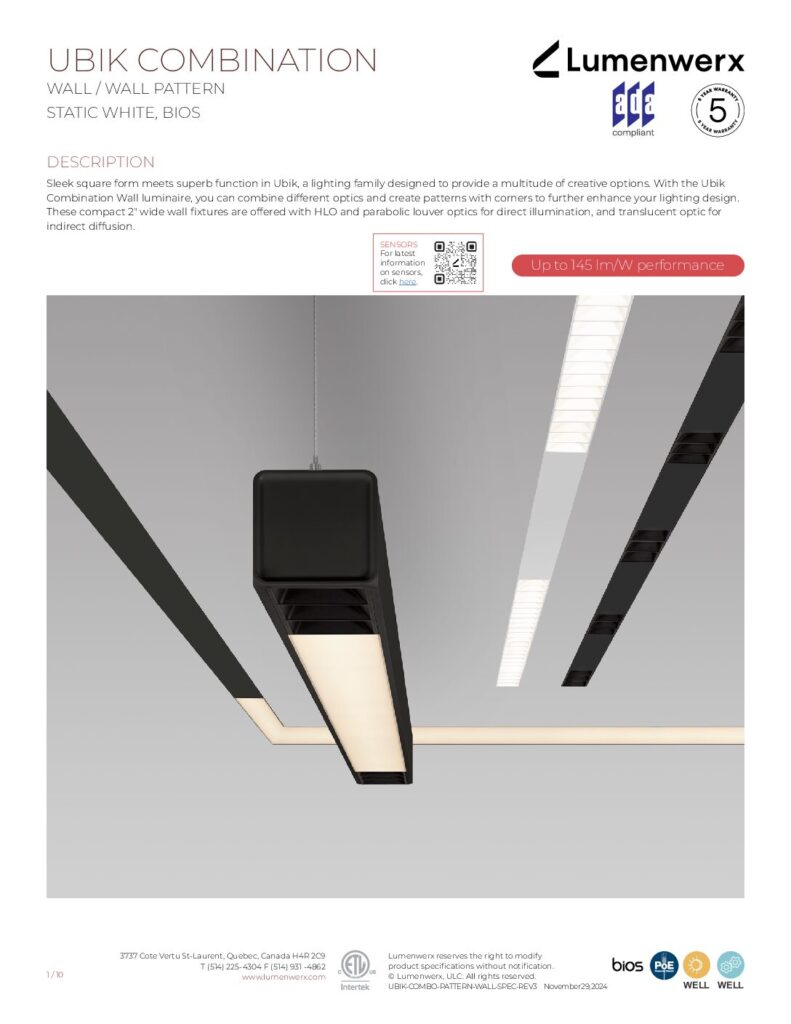 Play with lines, patterns, and corners.Designed as a pendant or wall-mounted fixture, Ubik Linear articulates space as a standalone unit, or grouped into a continuous run or pattern. Powered by our High-Efficiency Lambertian Optic (HLO), Ubik Linear transforms even the dimmest corners into bright design features.