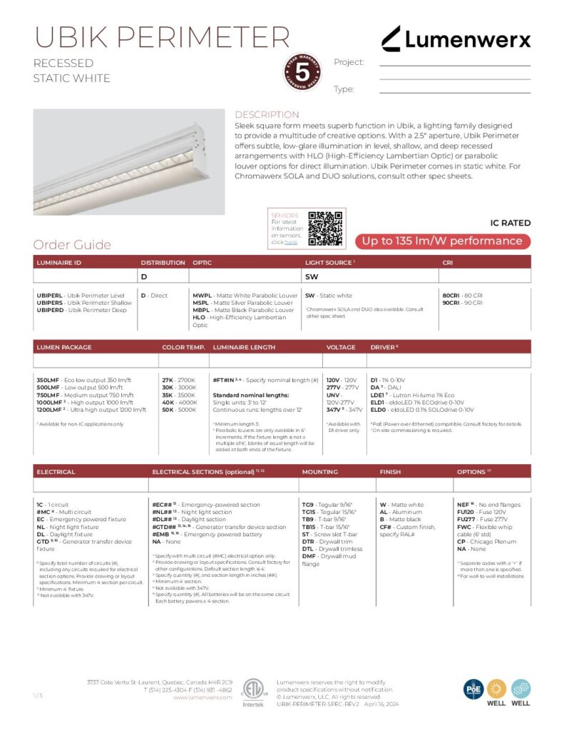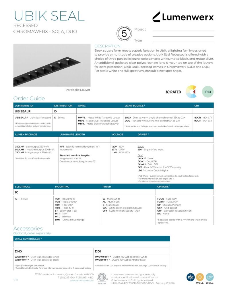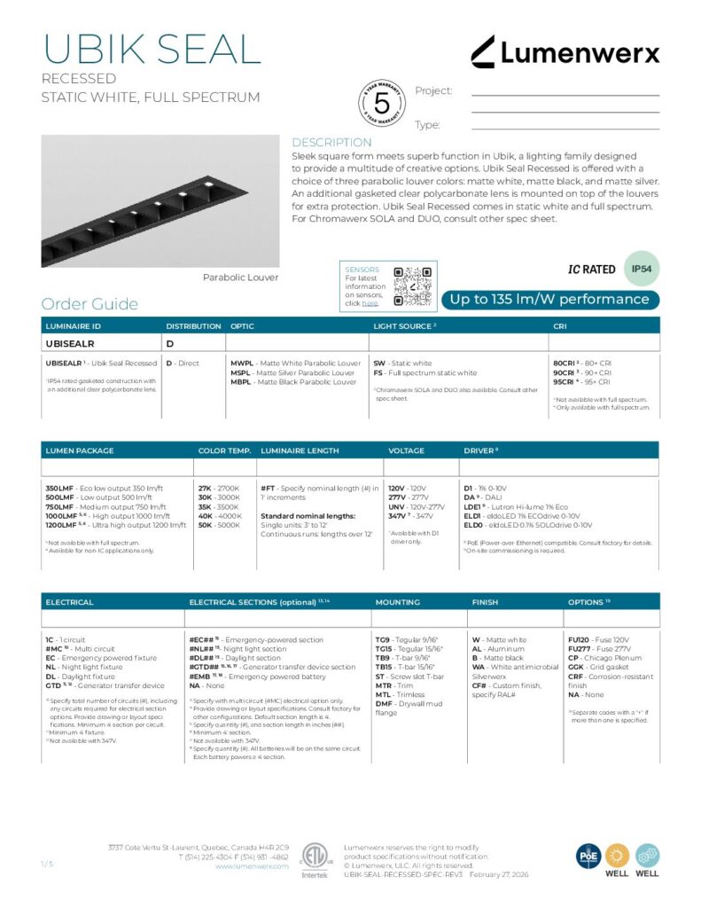 Fully sealed with IP54 ratingA recessed linear luminaire with excellent UGR, Ubik Seal can be installed as a standalone unit or in a continuous run. Choose from three louver color options, Matte White, Matte Black, or Matte Silver, with a gasketed clear polycarbonate lens for extra protection.