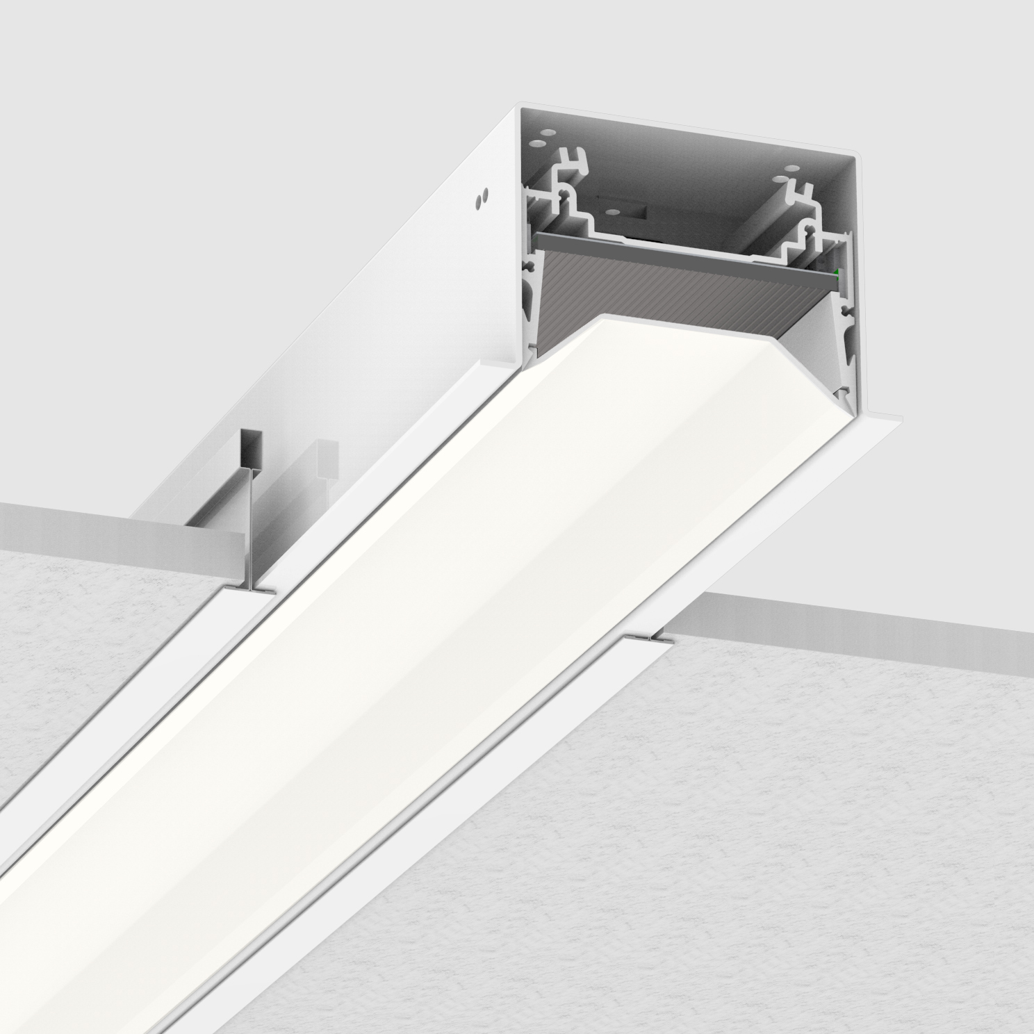 Shalo s’adapte à une variété de plafonds à grille avec des rails principaux nominalement 4″ au centre, y compris TECHZONE™, et peut être installé comme des luminaires discrets, des parcours continus de lumière ininterrompue, ou des motifs.