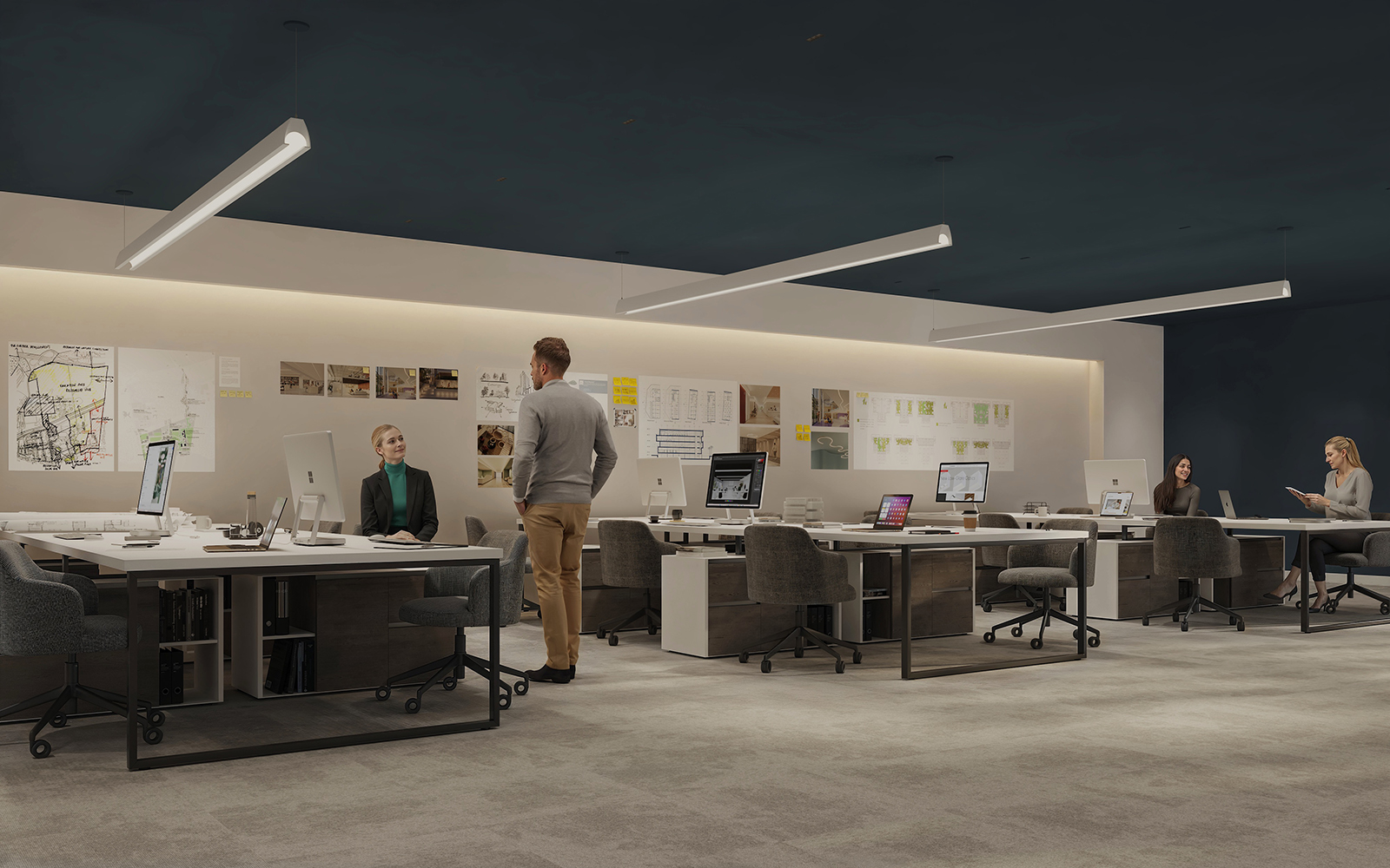 Available as a pendant, surface, or recessed luminaire, Cava is a linear LED with a remarkably comfortable appearance. Thanks to concealed, indirect arrays, Cava efficiently controls brightness by distributing light over a vaulted interior cavity. Cava is available with direct or direct/indirect distributions.