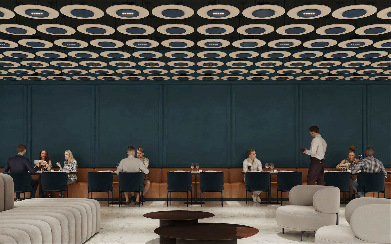 A stylish spin on a classic cylinder, Cluster Acoustix offers soft warm lighting, with sound-absorbing capabilities. Based on a fundamental 1.2″ square cell, these luminaires are available in either planar, or 4 cell configurations, with multiple color options for the optic louvers.