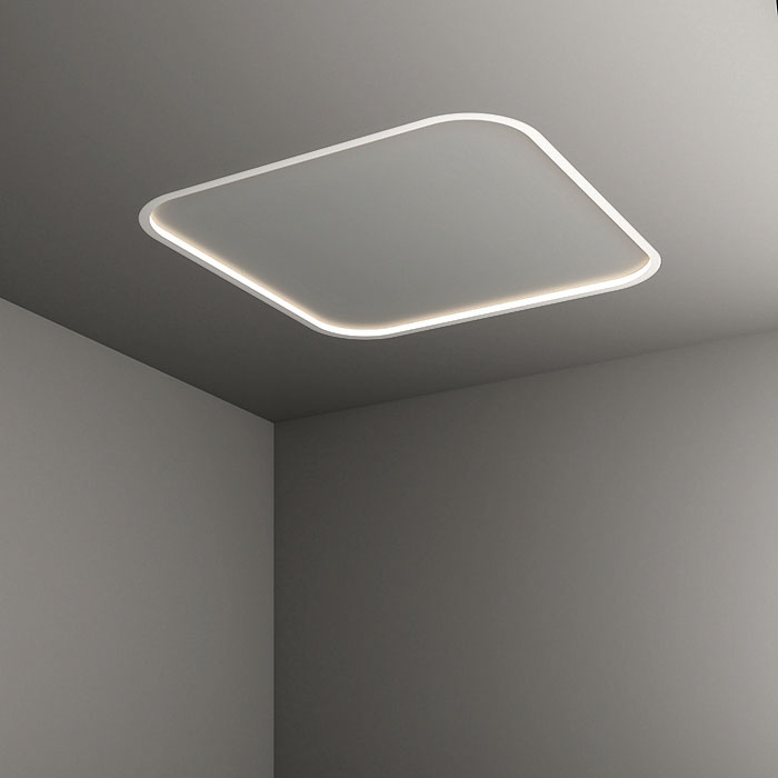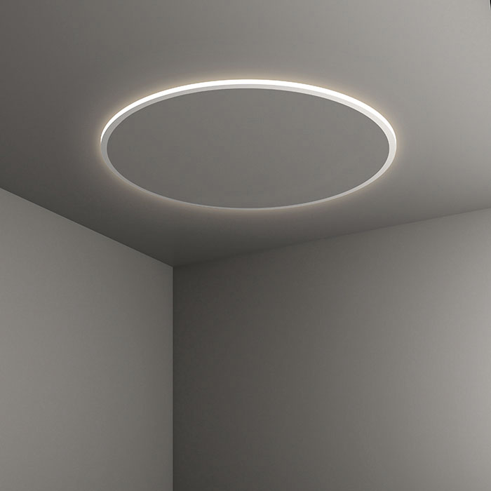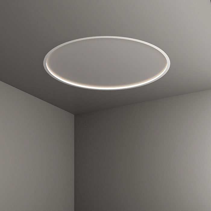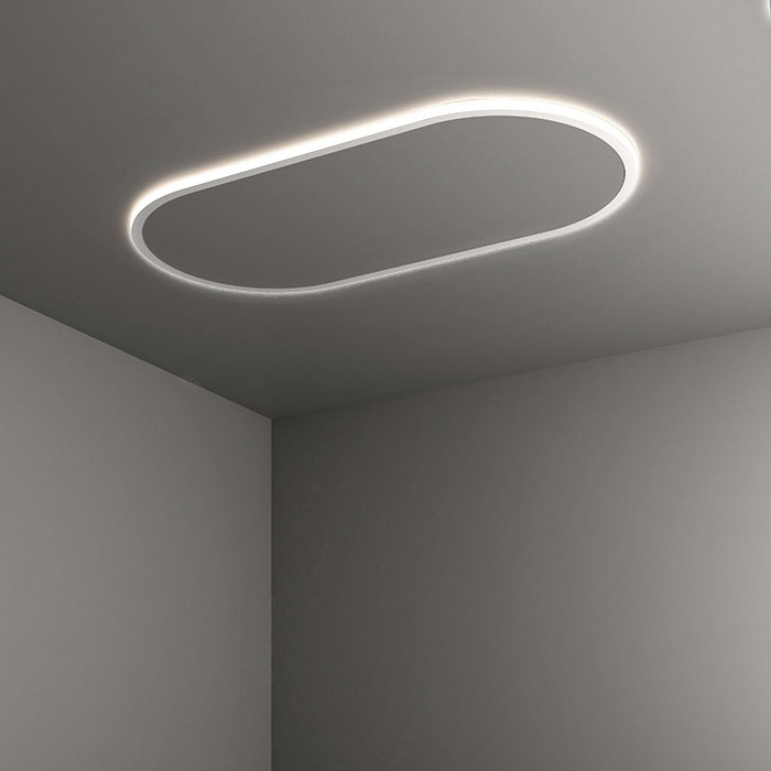 Designed for horizontal mounting, Curvia Horizon is available in four standard shapes: Ring, Rounded Square, Rounded Rectangle, and Capsule. The luminaires direct light inward toward the center or outward from the housing, providing versatile illumination that enhances depth and creates engaging visual effects.