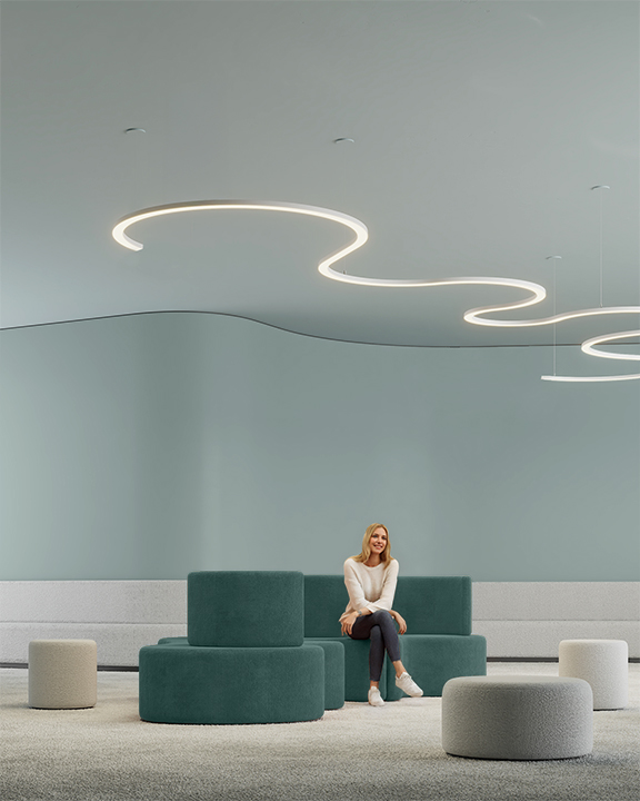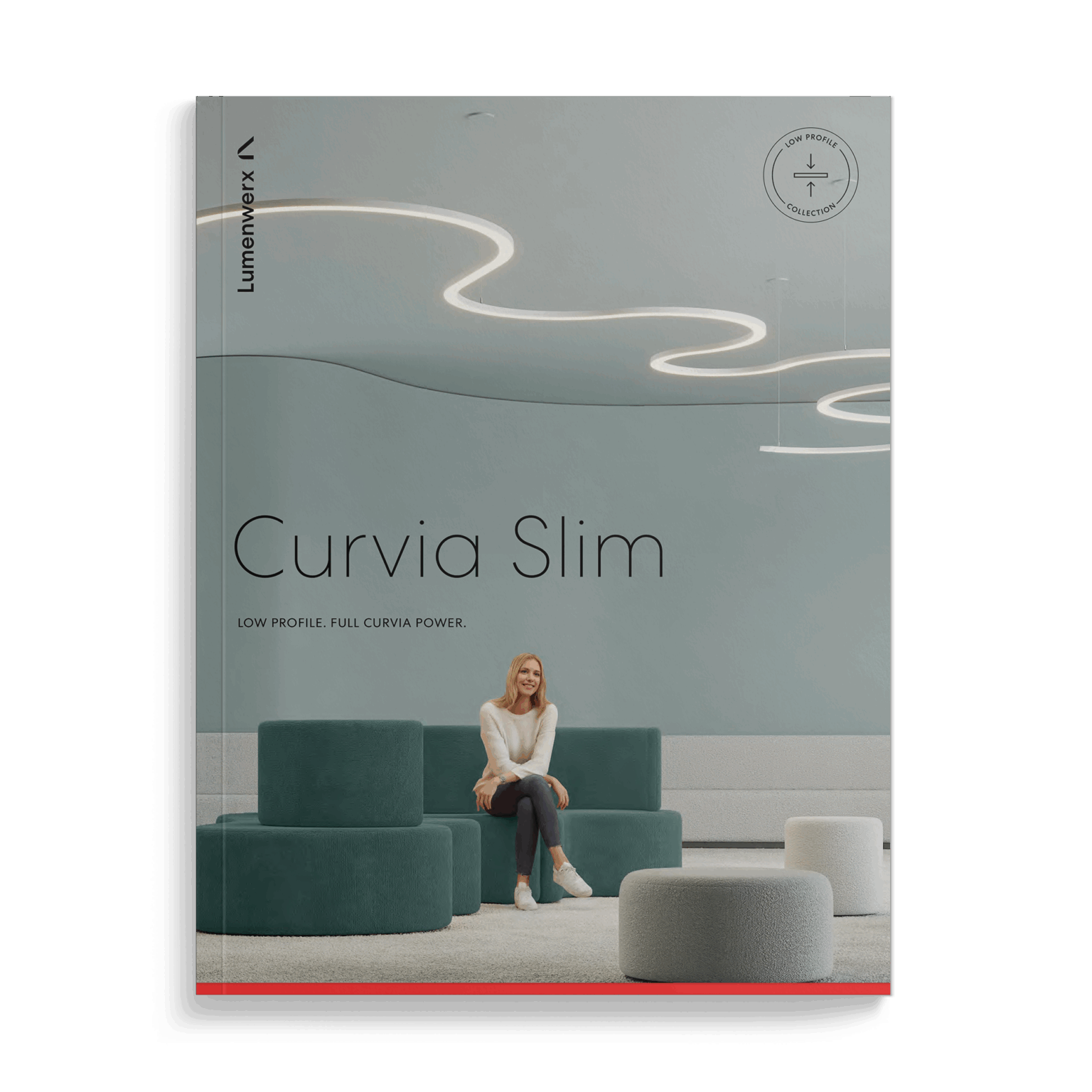At just 1.25″ tall and 1″ wide, Curvia Slim 1 delivers the full performance of Curvia in a slimmer profile. With three standard radii, 90° straight corners, and a choice of flat or rounded endcaps, the system enables elegant arcs, rings, and intricate patterns for recessed, surface, pendant, and wall/direct-view applications. Designed to seamlessly integrate into architectural spaces, Curvia Slim 1 offers bold geometry in a compact form.