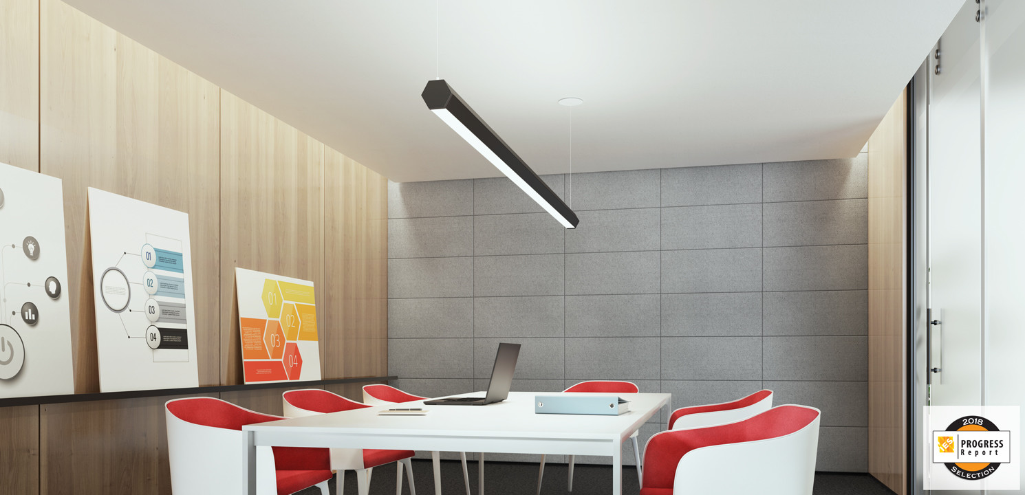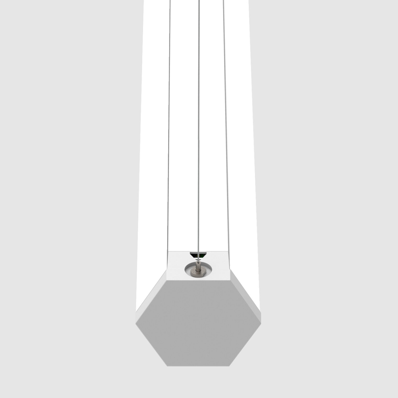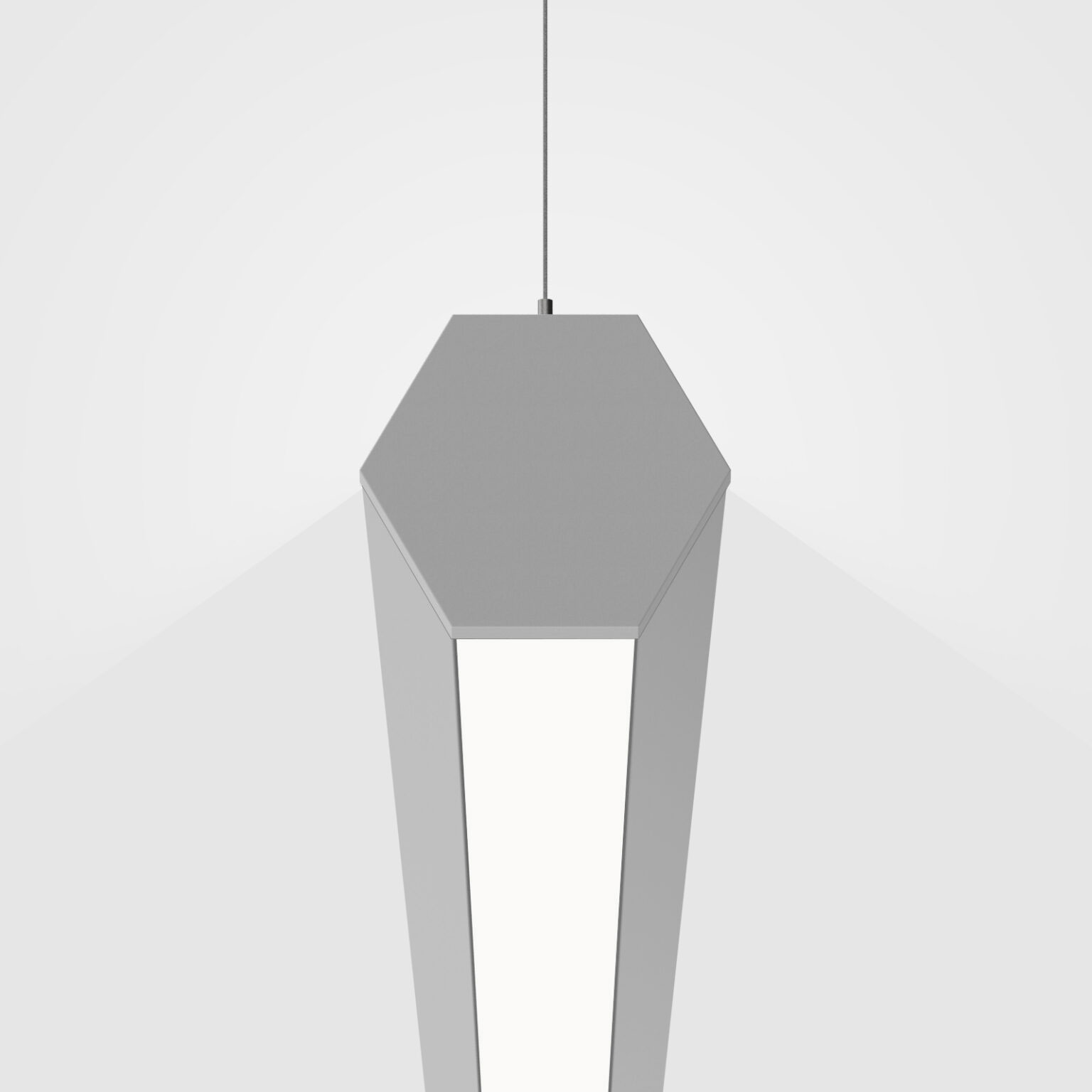 Hex is a distinctive and flexible six-sided luminaire designed for creative applications. The cell configuration determines both the light distribution and overall light output. Each cell is illuminated by its own LED array, ensuring consistent brightness across all cells. The 2″ wide panels snap into the core armature, providing a nearly seamless transition from cell to cell, as well as easy access to the LED arrays and driver.