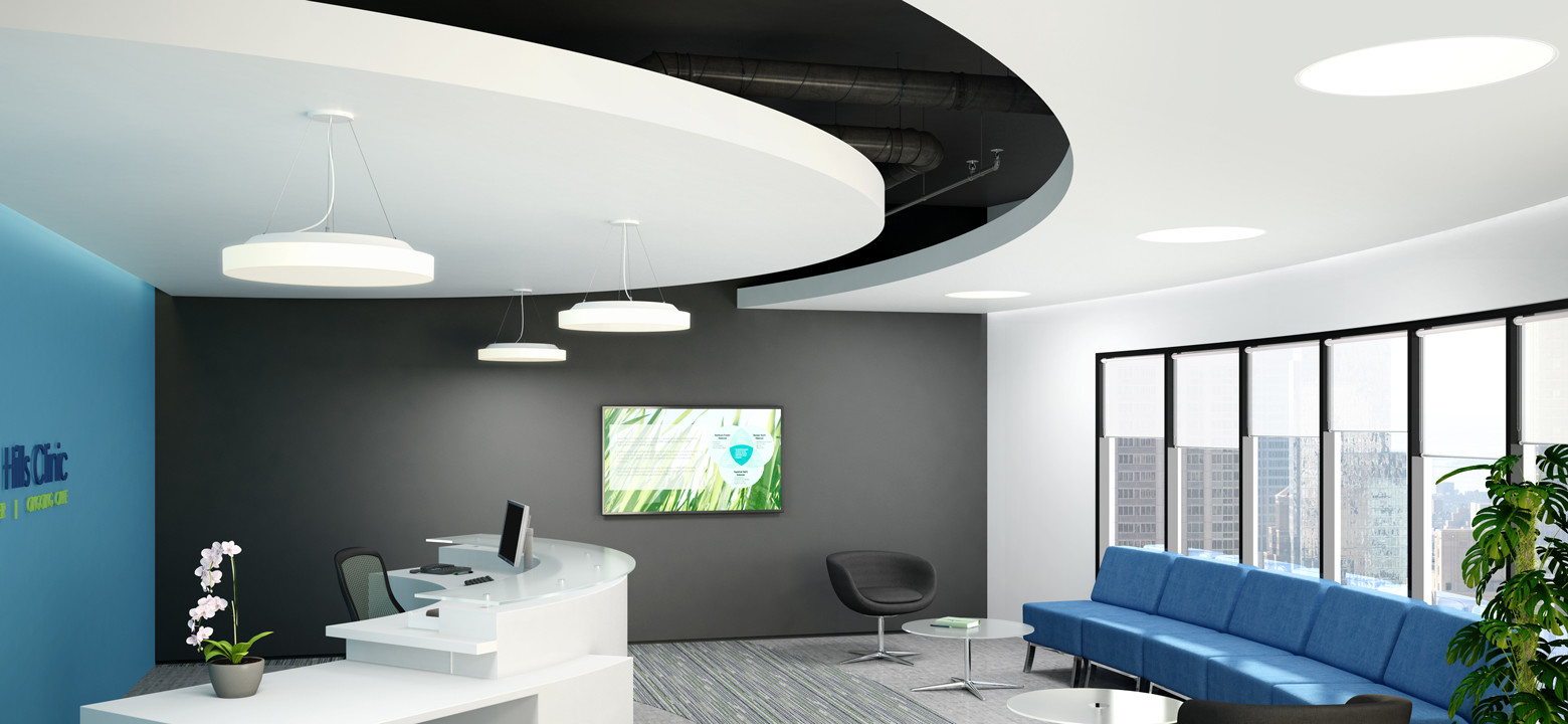 A broad range of color temperature, light output, electrical, and control options is offered. Each output option maintains the same diffuser brightness across different luminaire sizes, providing a visually consistent hierarchy of scale.