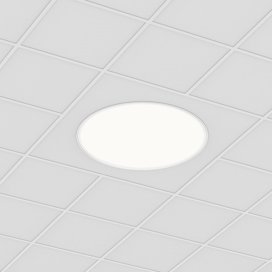 Pop Recessed features a uniformly luminous diffuser that sits flush with the ceiling. The diffuser and light engine form a fully enclosed unit, secured by a twist-and-lock mechanism for easy maintenance with no exposed hardware. Pop Recessed delivers up to 114 LPW and installs in both grid and gypsum board ceilings.