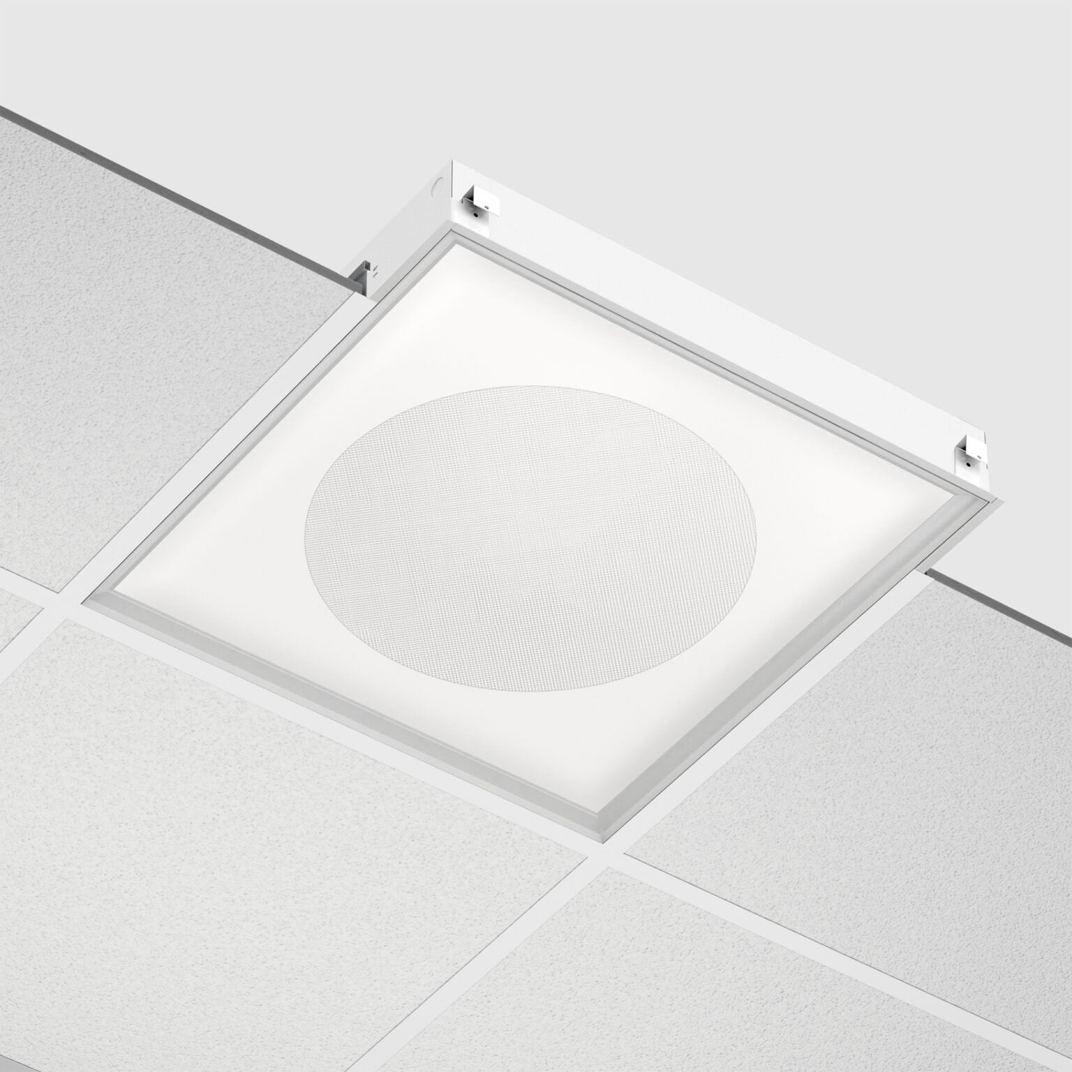 High-efficiency driver with adjustable drive current, directly mounted to luminaire housing for thermal dissipation. Concealed behind the lens frame, driver is easily reached for maintenance.