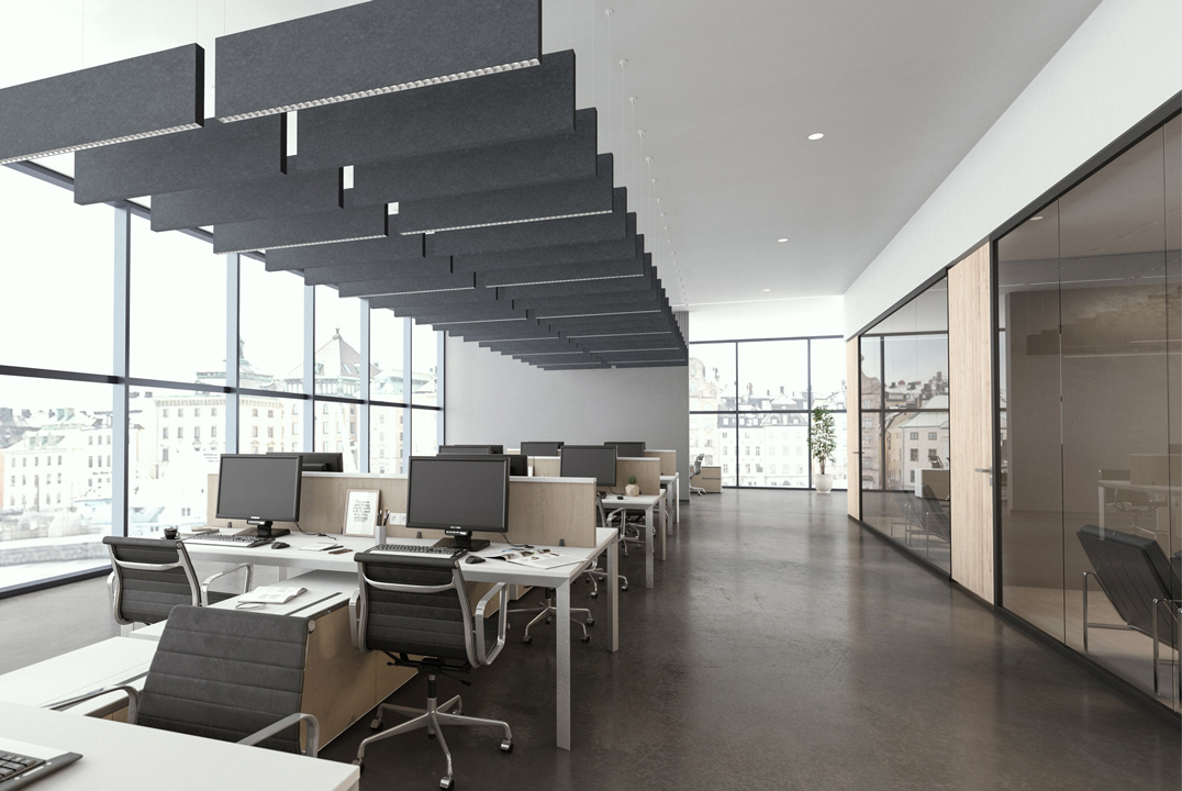 Superior craftsmanship meets optical performance and premium sound absorption in our Squero Acoustix line. Made using fine-cut acoustic felt, Squero Acoustix features a crisp, flat end cap and offers four standard optics for advanced illumination—matte parabolic louver, specular parabolic louver, Miniature Reflector Optic (MRO), and High-Efficiency Lambertian Optic (HLO)—as well as adjustable accent modules.