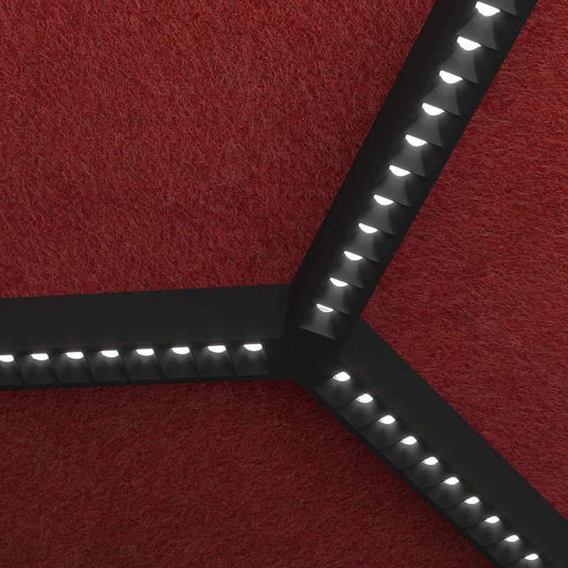 Flexible, scalable, and providing impressive sound absorption, the Squero Hubs Acoustix System features four geometric shapes that function as standalone luminaires or combine into custom configurations using 2-, 3-, or 4-way Hubs Connectors. Acoustic panels can cover the entire setup or specific modules. Blank Covers are available for areas needing sound absorption without illumination. Squero Hubs Acoustix easily integrates with other building systems, including sprinklers, air conduits, and sound equipment.