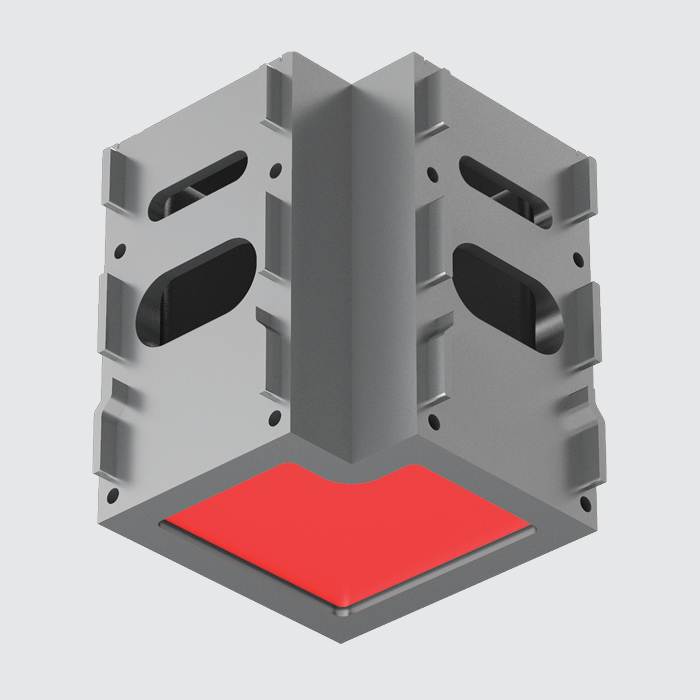 All Hubs are available with a choice of recessed color accent panels or with a flush room-side face. Two-way, three-way, and four-way connectors are available in different angles, as well as custom variations. The 12 Hubs create precise geometric alignment and match the 1 7/8″ x 3 1/8″ profile and finish of Squero modules.