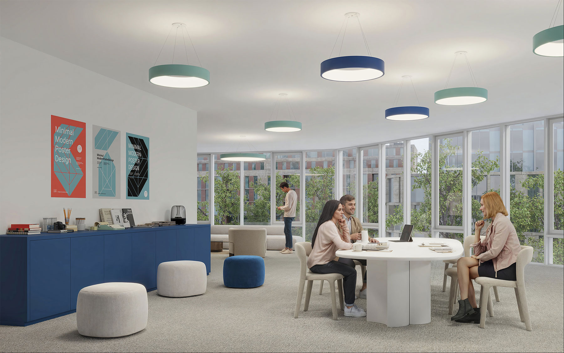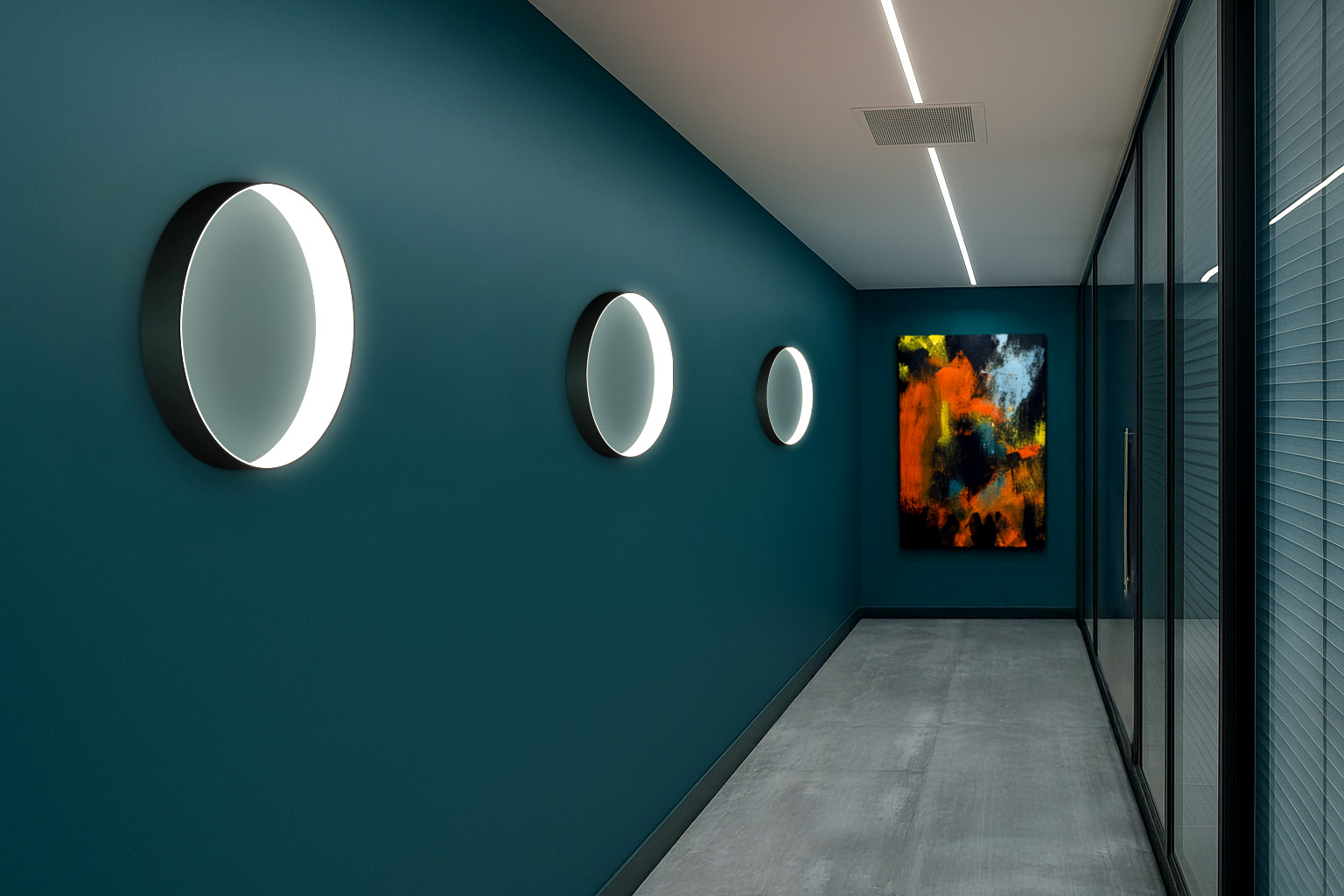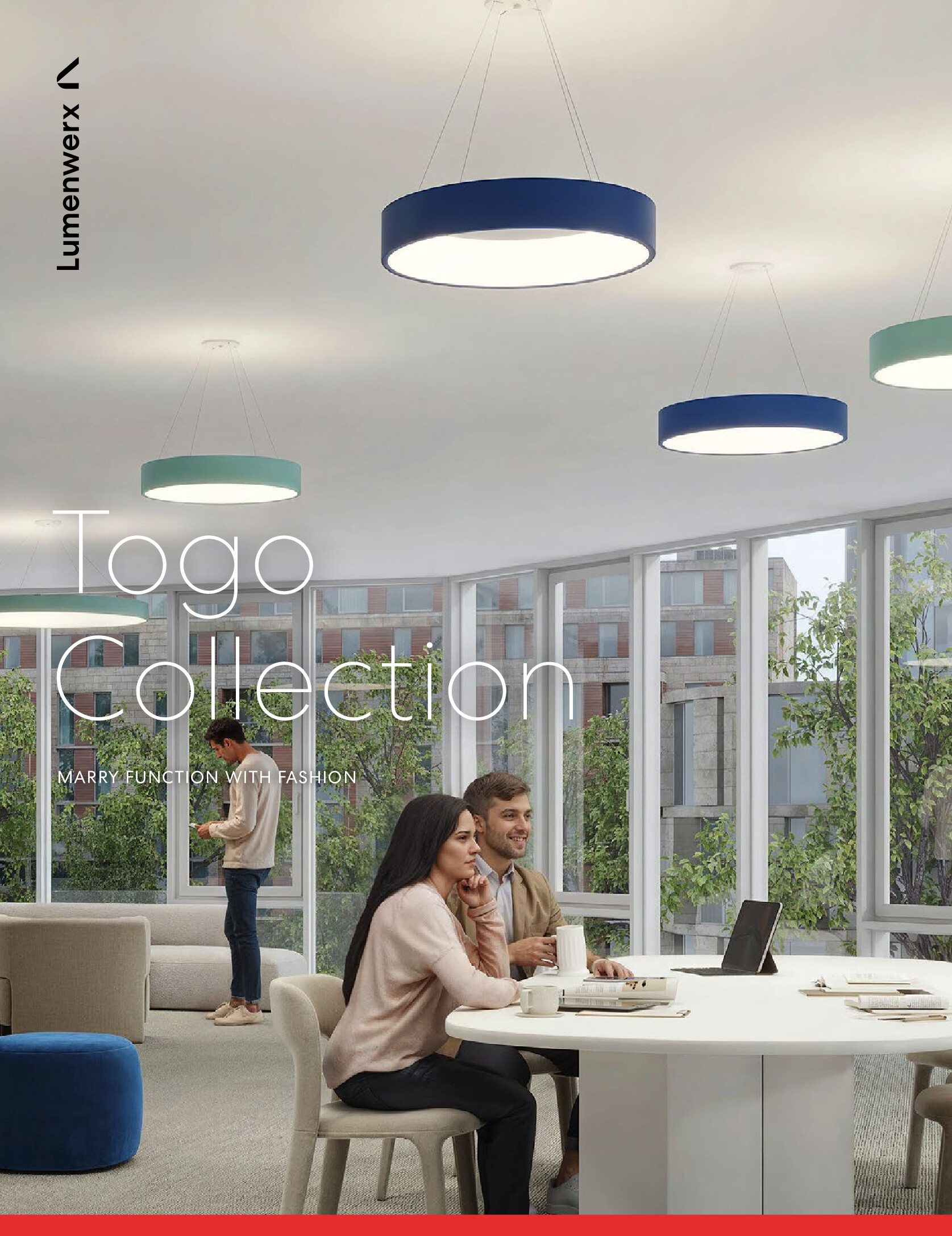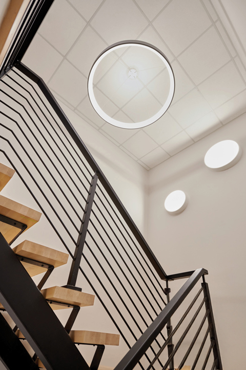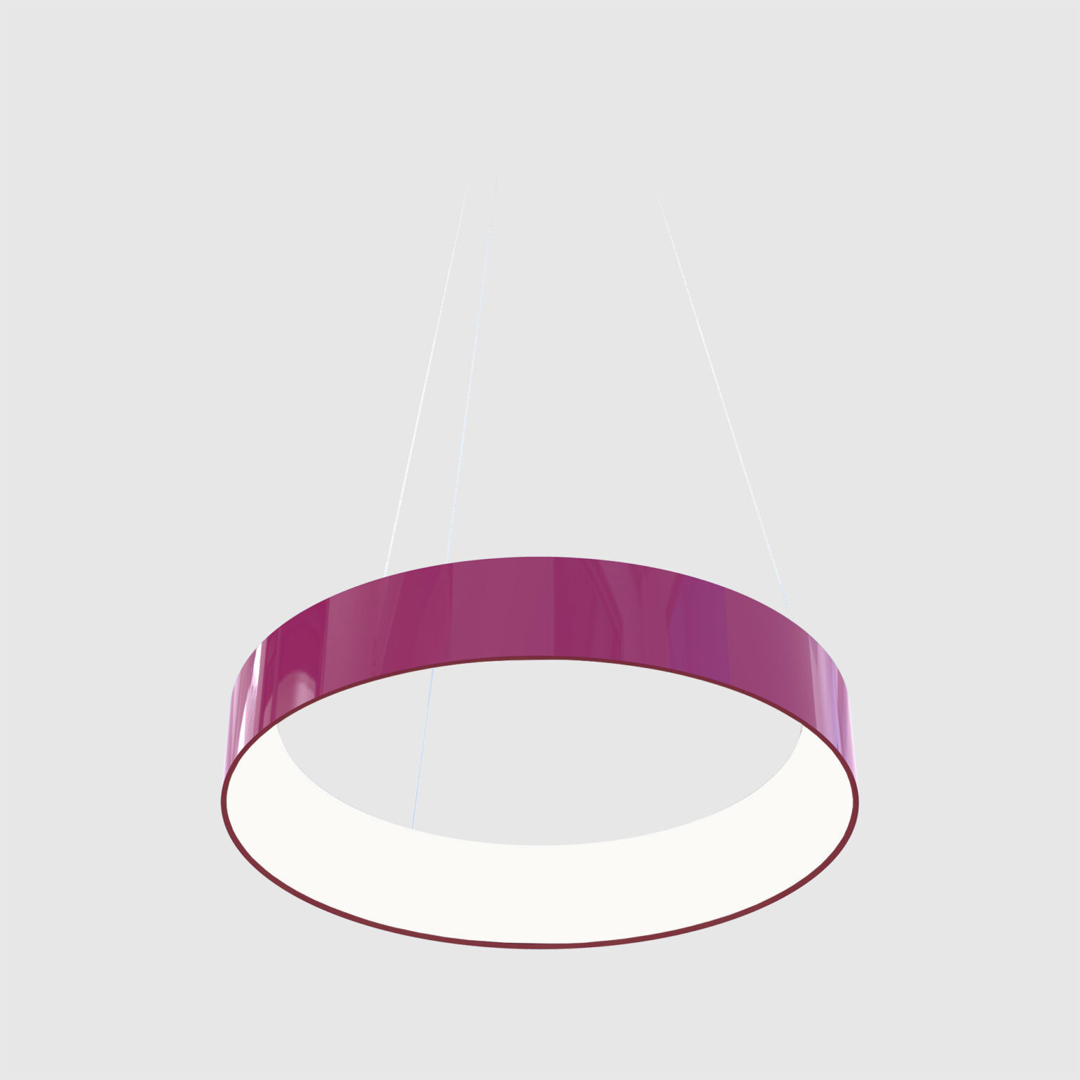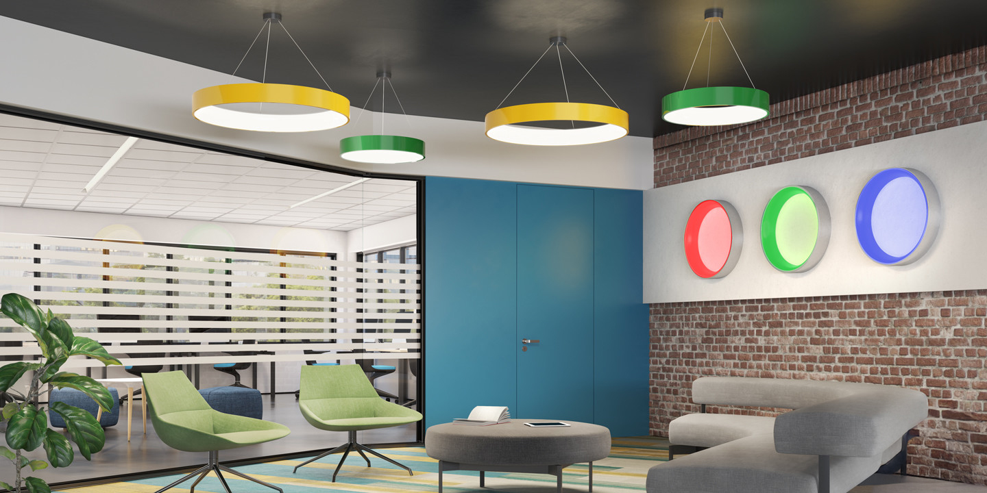 Togo provides generous ambient illumination from a minimal and elegant ring form. Nestled in a crisp 4″-high opaque band, the distinctive annular diffuser glows inwardly. The diffuser’s softly rounded compound curve lends Togo a slender appearance. Available in 18″, 24″, 36″, and 48″ diameters, Togo delivers efficient, widespread, direct/indirect illumination (65/35) with spacing criteria of 1.6 and a range of light outputs. Togo’s outer housing of extruded aluminum is welded and buffed to a seamless band that can be painted in our nine standard finishes or an RAL custom color to coordinate with virtually any interior finish. The Togo driver mounts remotely, either above or below the ceiling. In addition to a conventional power cord, Togo also offers an ultra-clean mounting detail with integrated power and suspension cables. Controls include dimming to 1% in 0–10V, line voltage, and digital protocols. Night light and emergency circuiting are available. Togo supports the full range of Chromawerx Sola, Duo, and Quadro options for tunable white and RGBW expressive color.