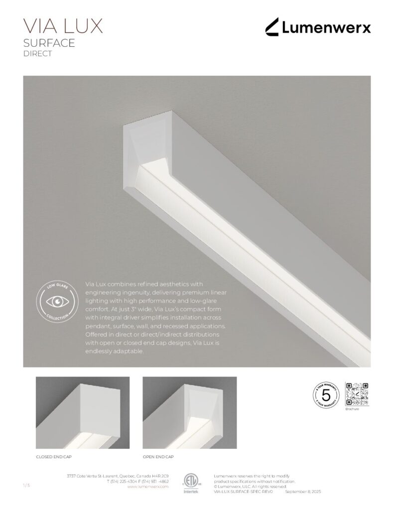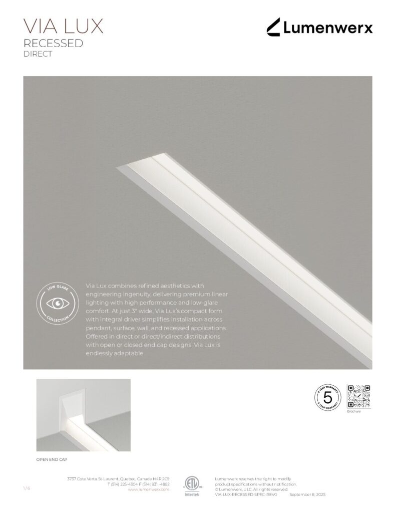 Luxury architectural detailing defines Via Lux—from its refined fixture design to its sophisticated mounting solutions, optical flexibility and transition details. Via Lux features an even, uniform, low-glare direct optic using our Nanolux technology in combination with our powerful Via optical systems.