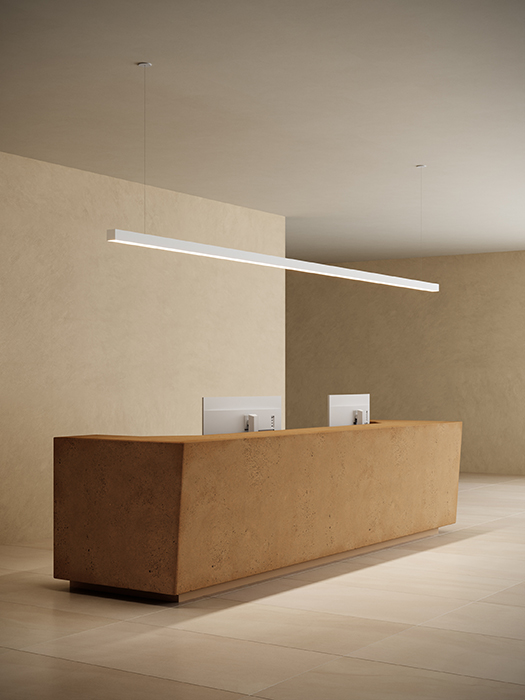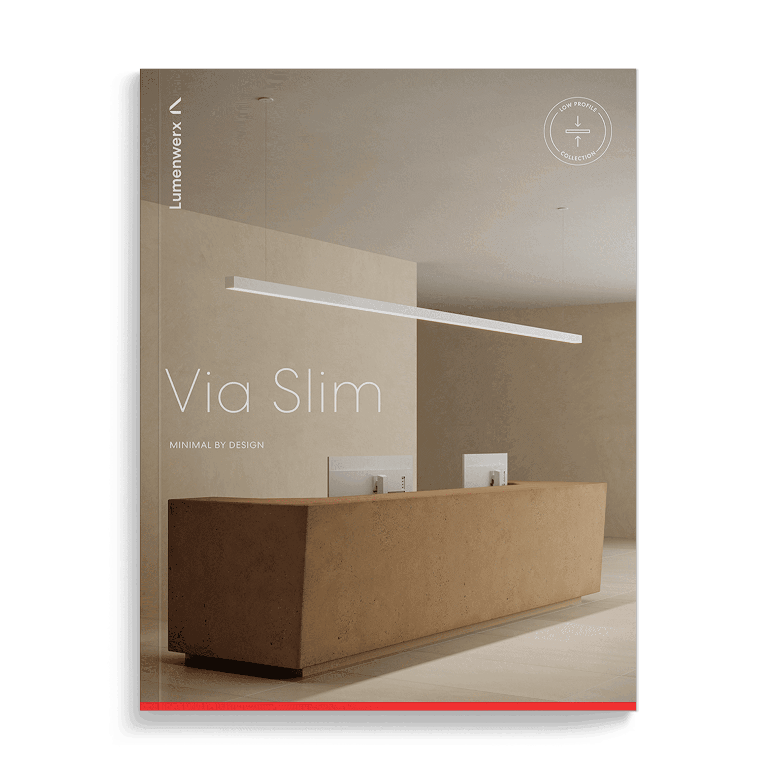 One of the most compact and versatile systems in its class, Via Slim combines minimal design with full-scale performance, featuring one of the slimmest linear profiles—just 2 3/8″ tall and available in 2″ and 3″ widths with integral drivers. Pendant or wall-mounted, with direct-only or direct/indirect distribution, Via Slim expands design possibilities through standalone fixtures, linear runs, and pattern configurations.