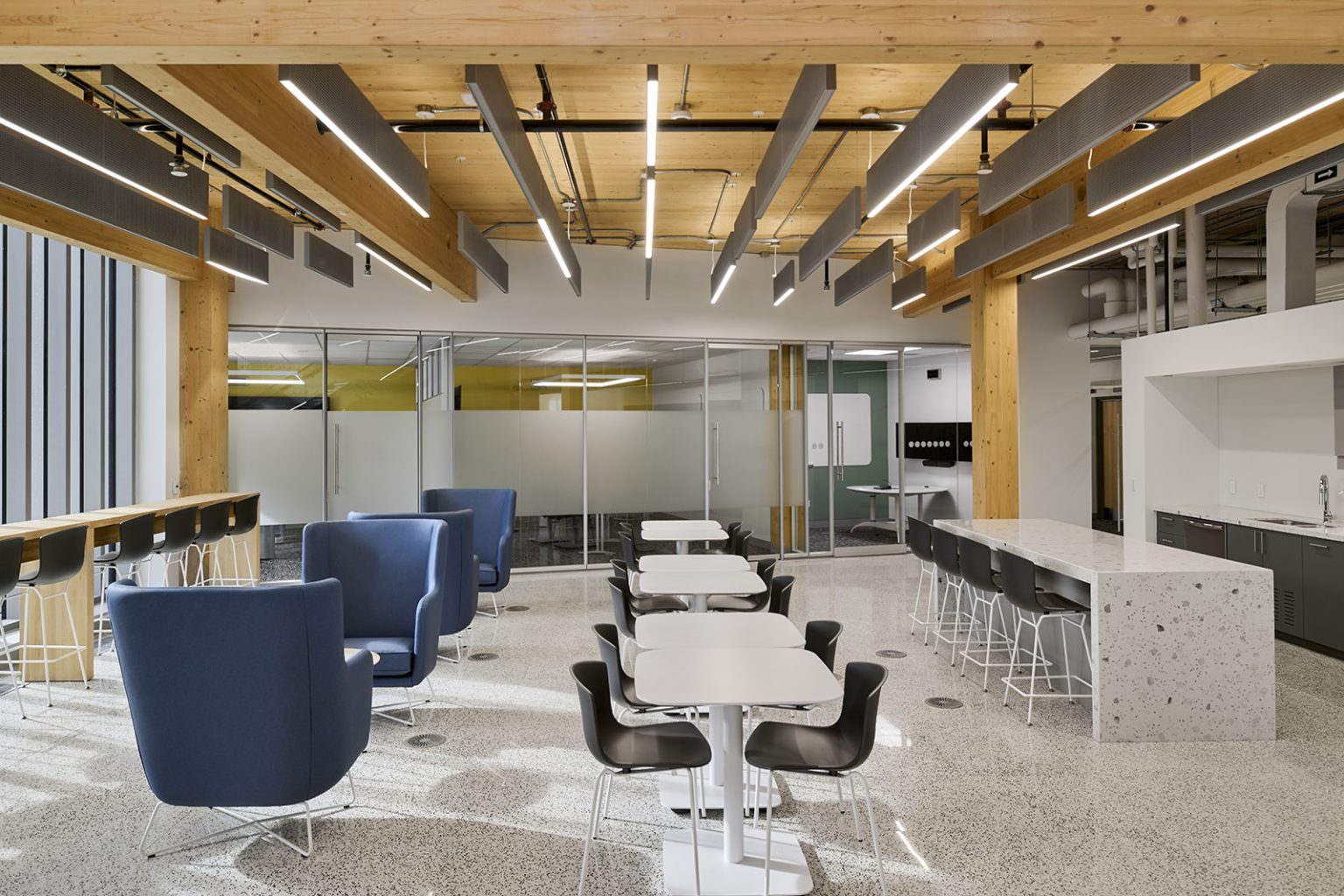 In each case, lighting was customized via integration with BIOS Lighting LED technology, to support circadian rhythms, boost mood and help enhance employee focus. With natural daylight being so important, the plan also features Lutron Quantum control for occupancy and daylight level adjustments to optimize savings through daylight harvesting and shade control.