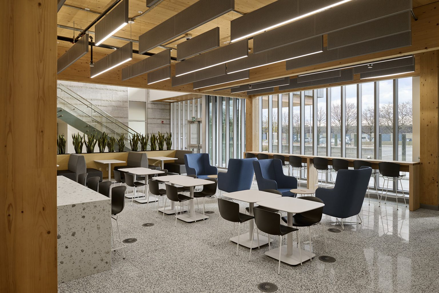 Architecturally, the facility, designed to achieve net-zero carbon emissions, features open layouts, tall ceilings, and an abundance of natural light—a factor Enbridge saw as a top priority. The subsequent lighting scheme would involve a variety of complementary Lumenwerx collections selected to promote comfort, visual clarity, and energy efficiency.