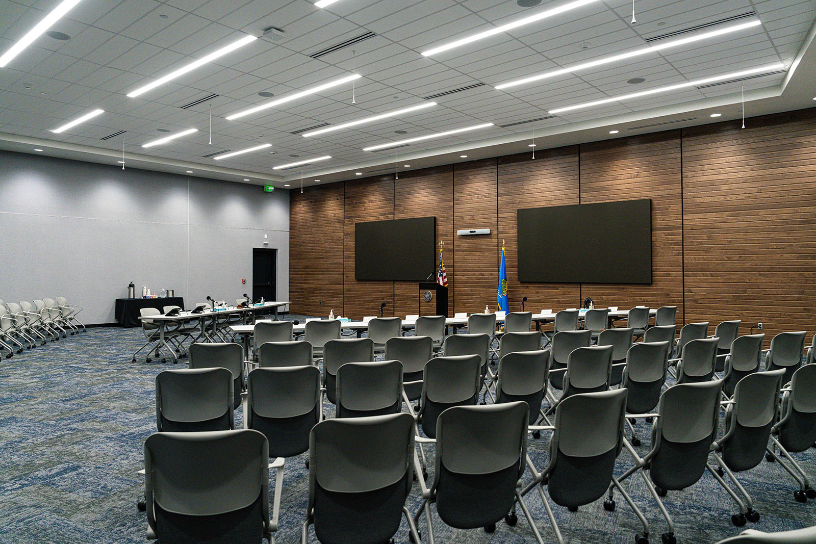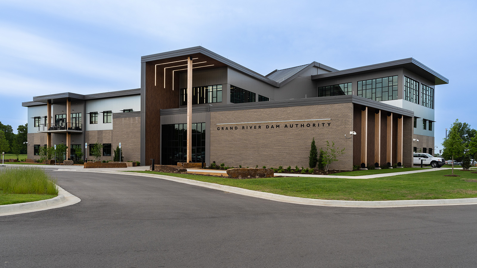 The design brief for the Grand River Dam Authority (GRDA) building in Pryor, Oklahoma, called for a structure that was functional and visually unified across its floorplate. Lumenwerx was brought on board to develop a lighting plan that supports the building’s architectural clarity while enhancing the experiences of the people who work there and visit the space.