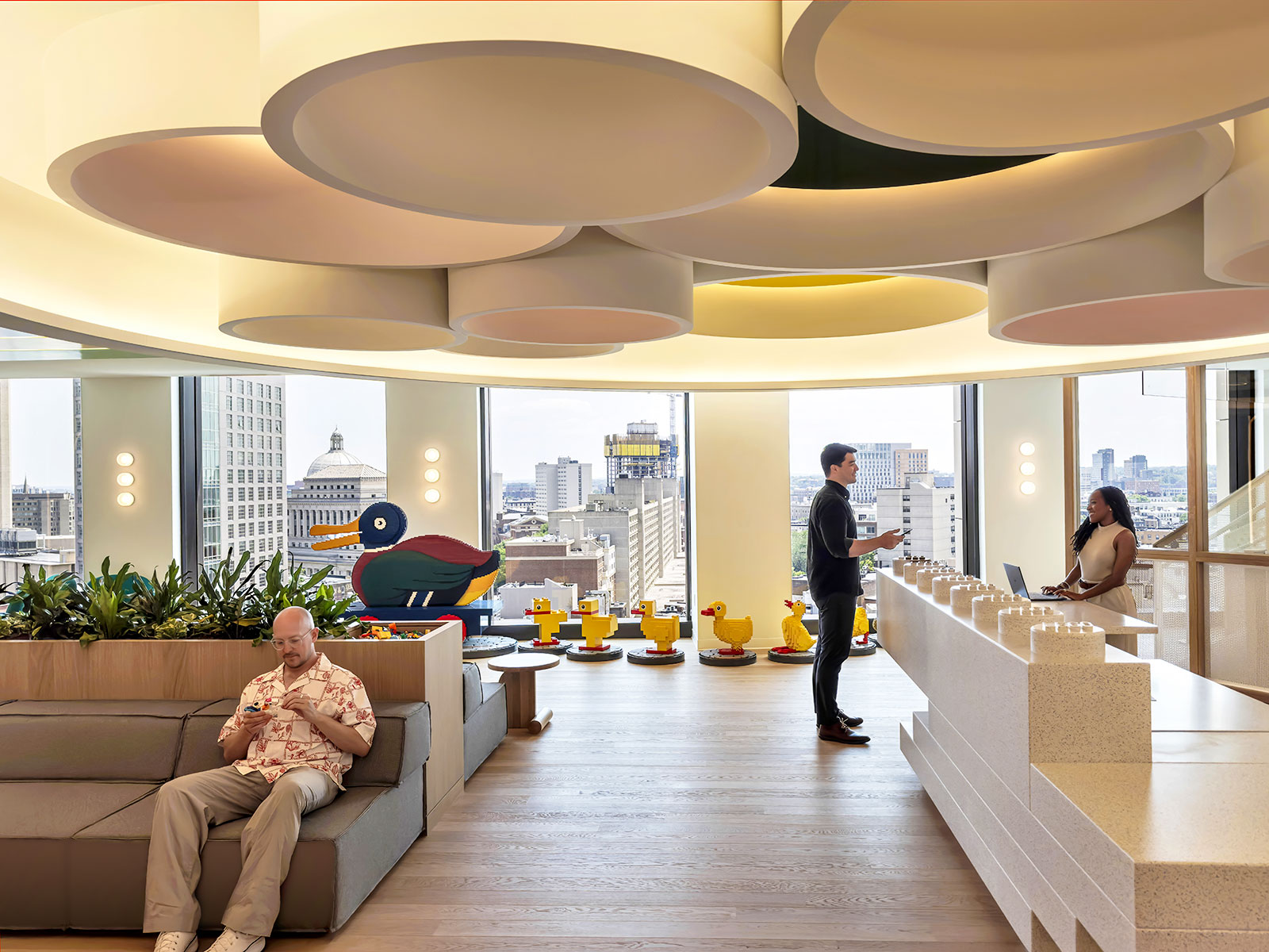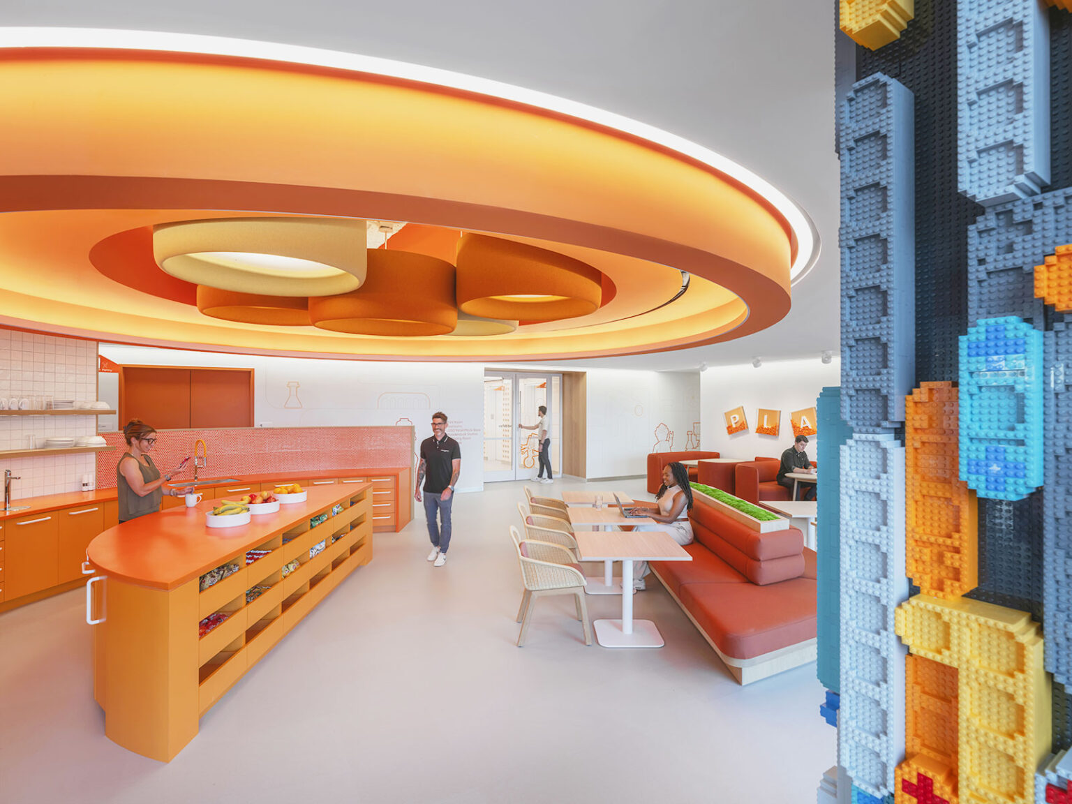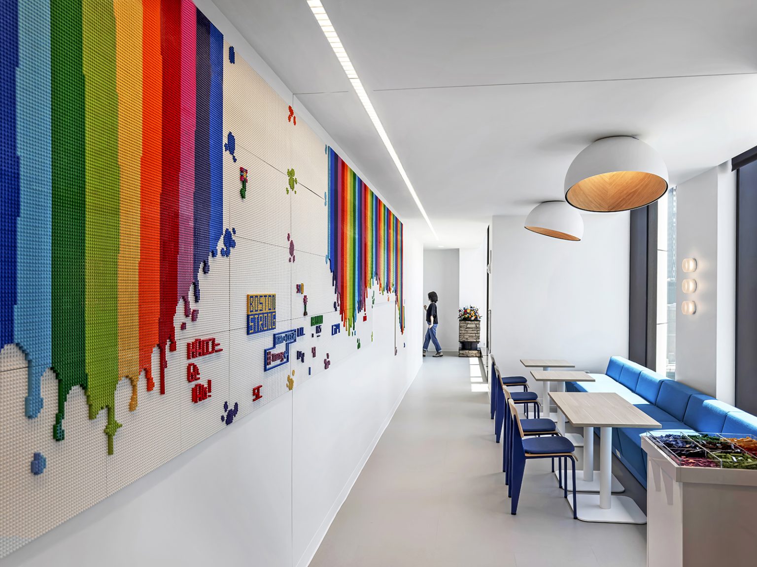 At the new LEGO Group Americas Hub in Boston’s Back Bay, creativity lives in every square inch. Designed by BDG Architecture + Design and covering 157,000 square feet over six floors, the new headquarters provides space for more than 800 staff, stands as a new model for sustainable design and employee experience, and is awash in colour.