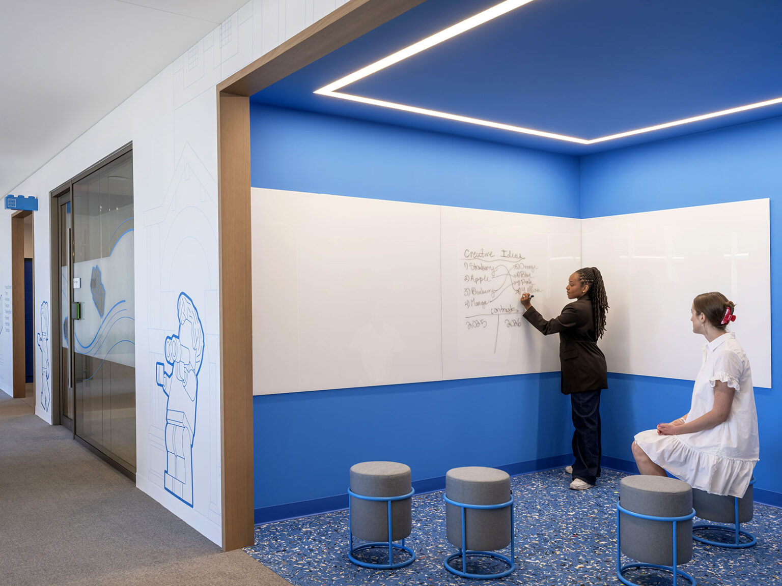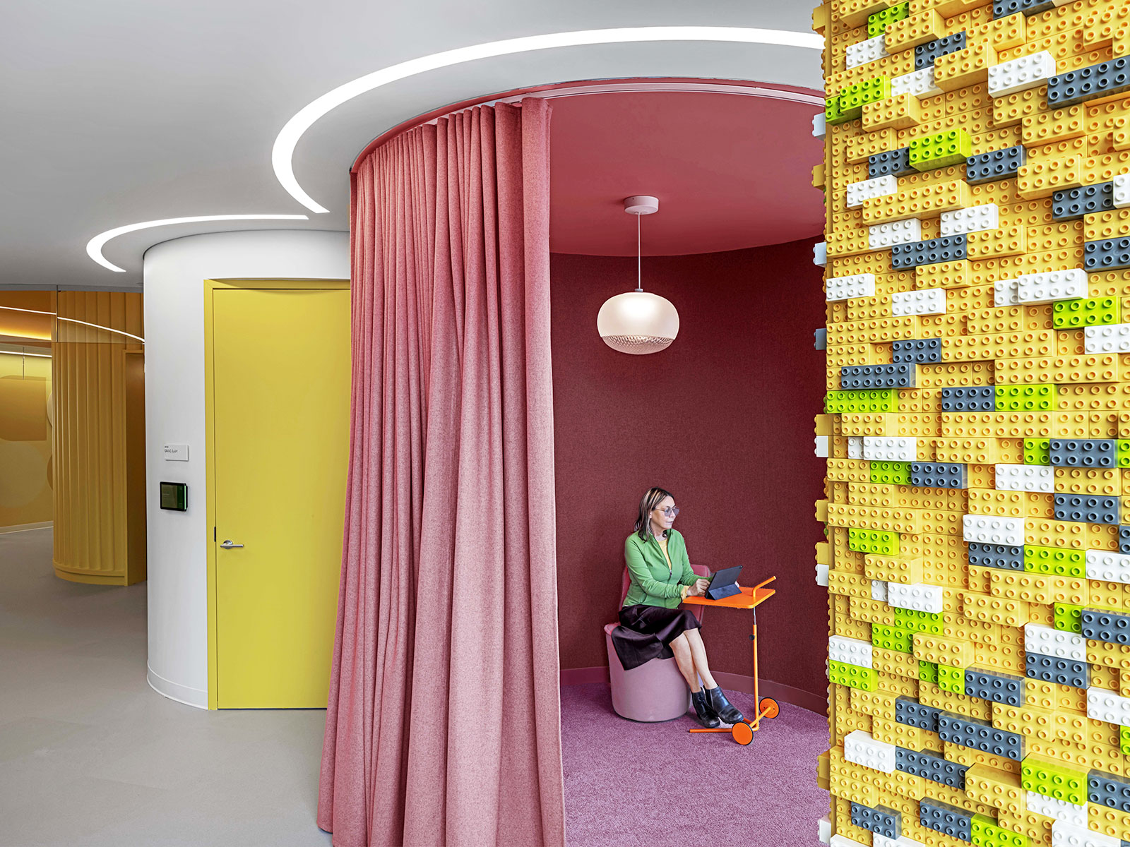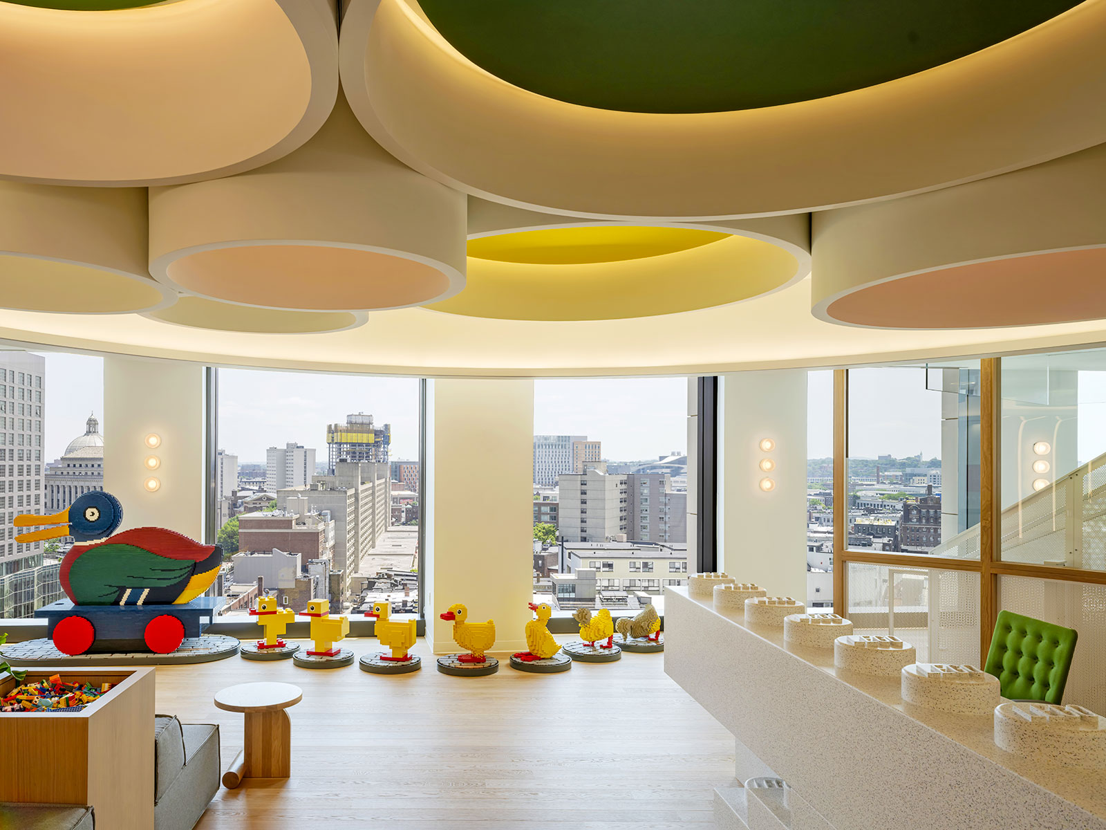 At the new LEGO Group Americas Hub in Boston’s Back Bay, creativity lives in every square inch. Designed by BDG Architecture + Design and covering 157,000 square feet over six floors, the new headquarters provides space for more than 800 staff, stands as a new model for sustainable design and employee experience, and is awash in colour.