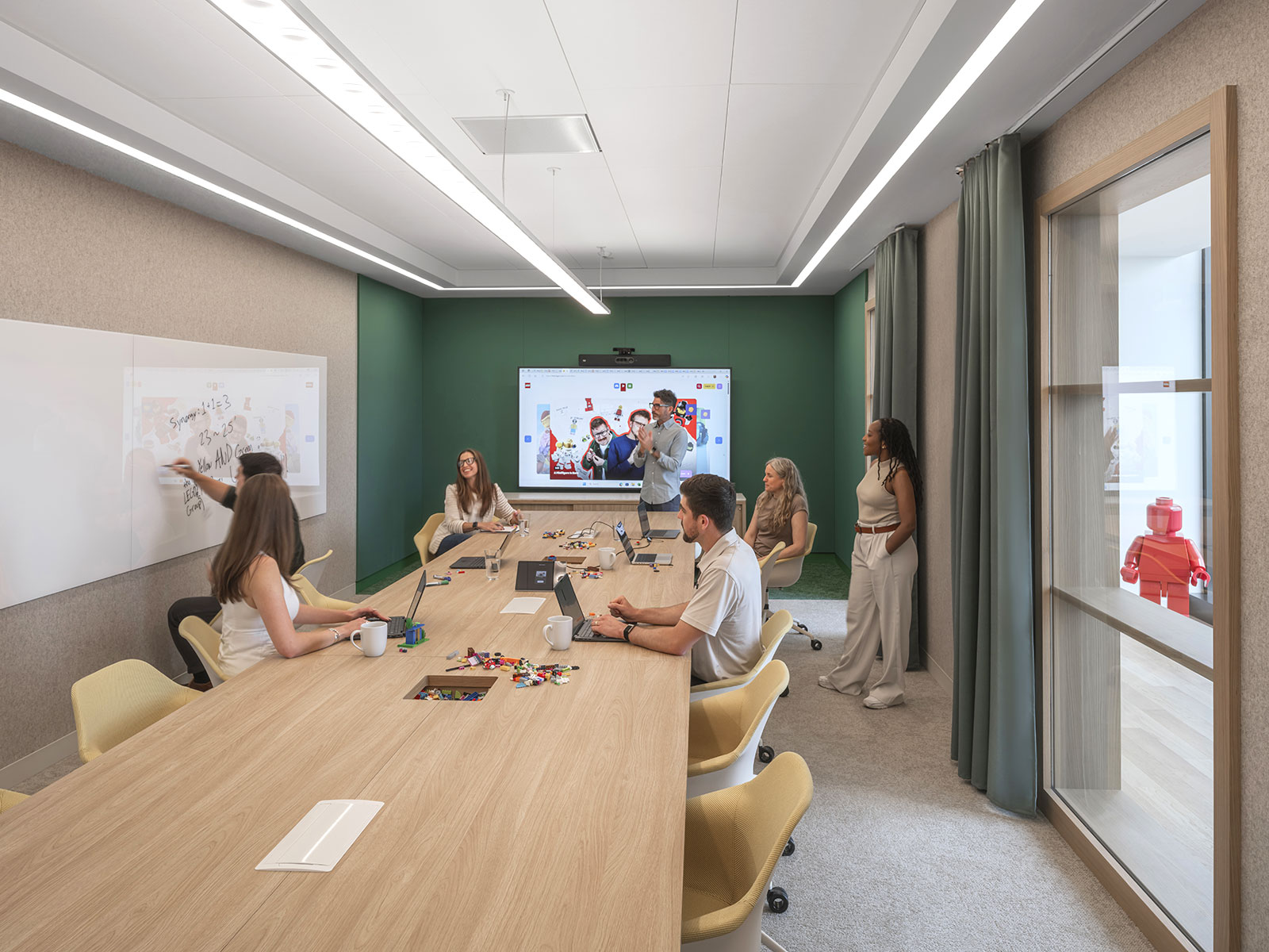 Naturally, in spaces designed to be as unique and playful as LEGO blocks themselves, lighting plays a large role in setting the tone. With so much square footage to illuminate, Lumenwerx collaborated with BDG Architecture + Design and Lux Collaborative to develop a system that could balance comfort and performance across workstations, transitory spaces, circulation pathways, and more, while achieving the project’s sustainability goals.