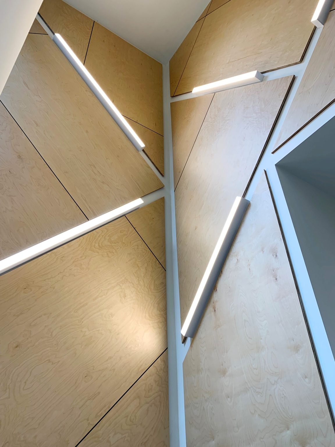 To support such a varied architectural layout, our teams devised a plan to optimize illumination for each activity zone. The backbone of the approach, linear Via luminaires set the tone with their clean architectural lines and balanced integration. These fit effortlessly into circulation areas and shared spaces, guiding movement and activity throughout the building.