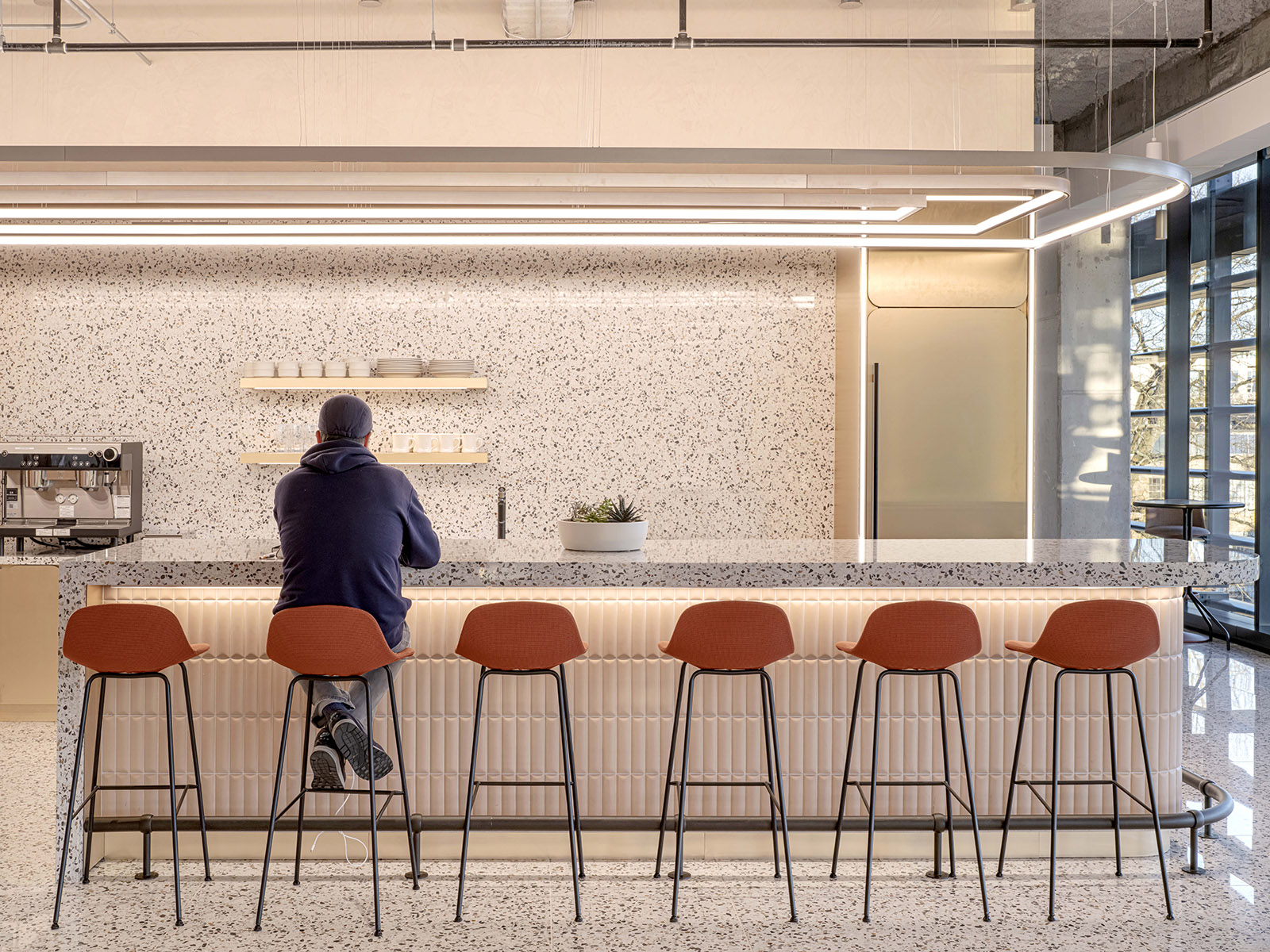 With a design plan focused on connecting individuals, teams and the surrounding city, BDG’s vision drew on the character of Atlanta, and the warm sentiments of the South. The palette included, red accents and natural wood, with light acting as a key storytelling element. Rim’s customizable luminaires indeed provided a visual language to illuminate the space and serve as a natural complement to this palette.